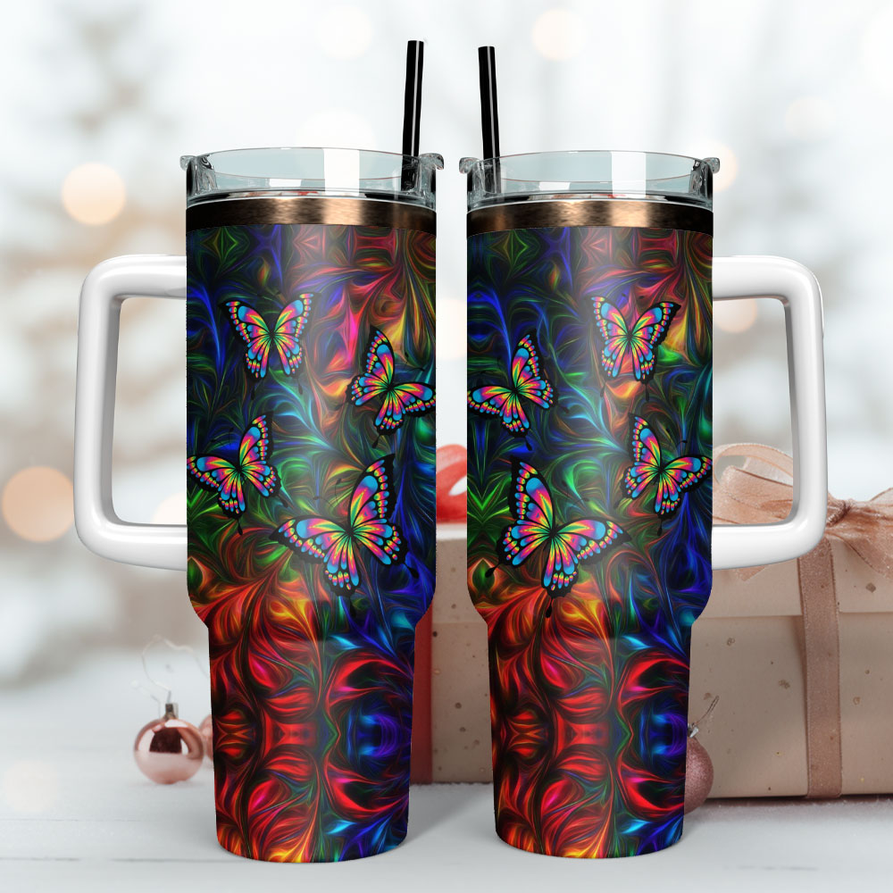 Butterfly Art Custom Stanley Quencher 40Oz Stainless Steel Tumbler With Handle