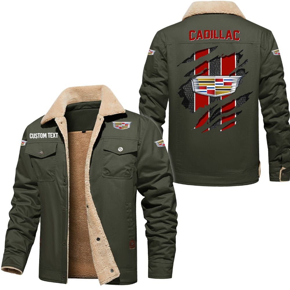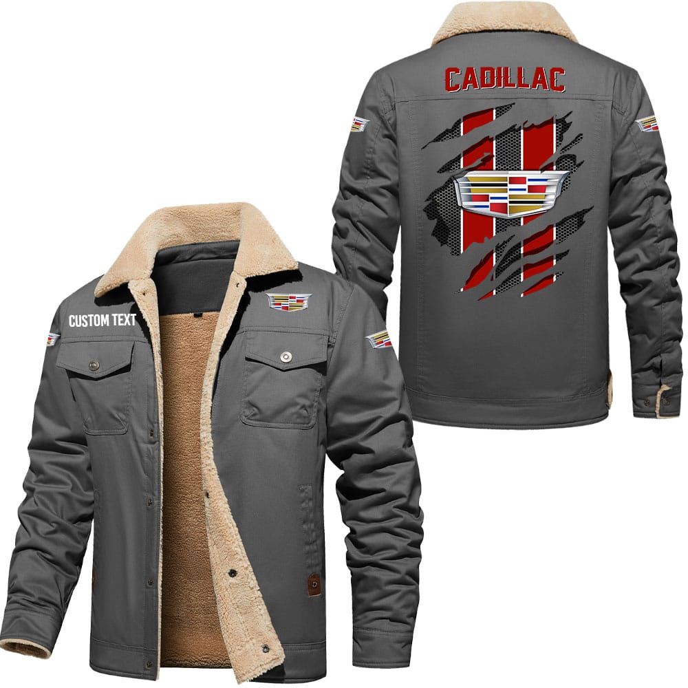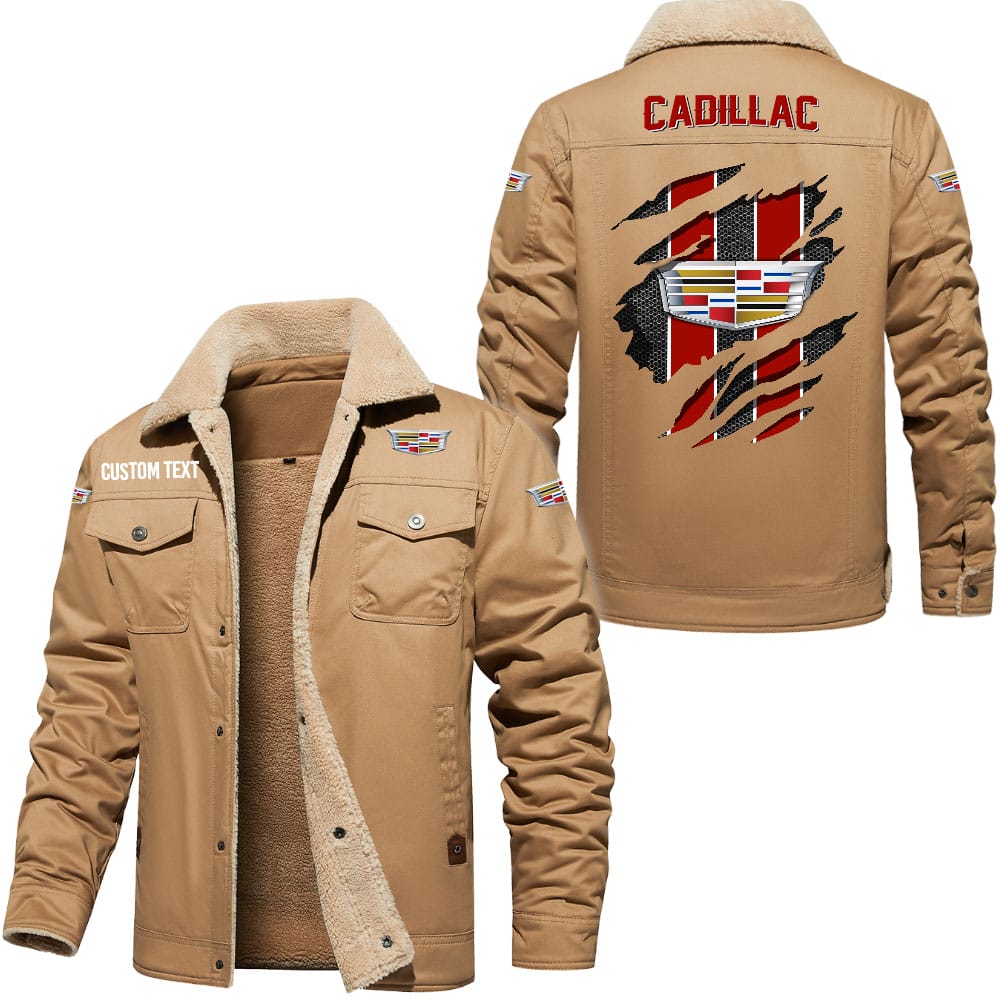 Cadillac Logo Custom Name Cargo Fleece Lined Cotton Jacket