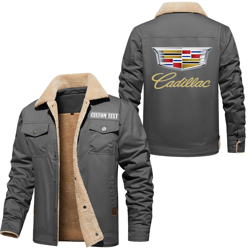 Cadillac Logo Custom Name Cargo Fleece Lined Cotton Jacket Stylish Warm Personalized Outerwear