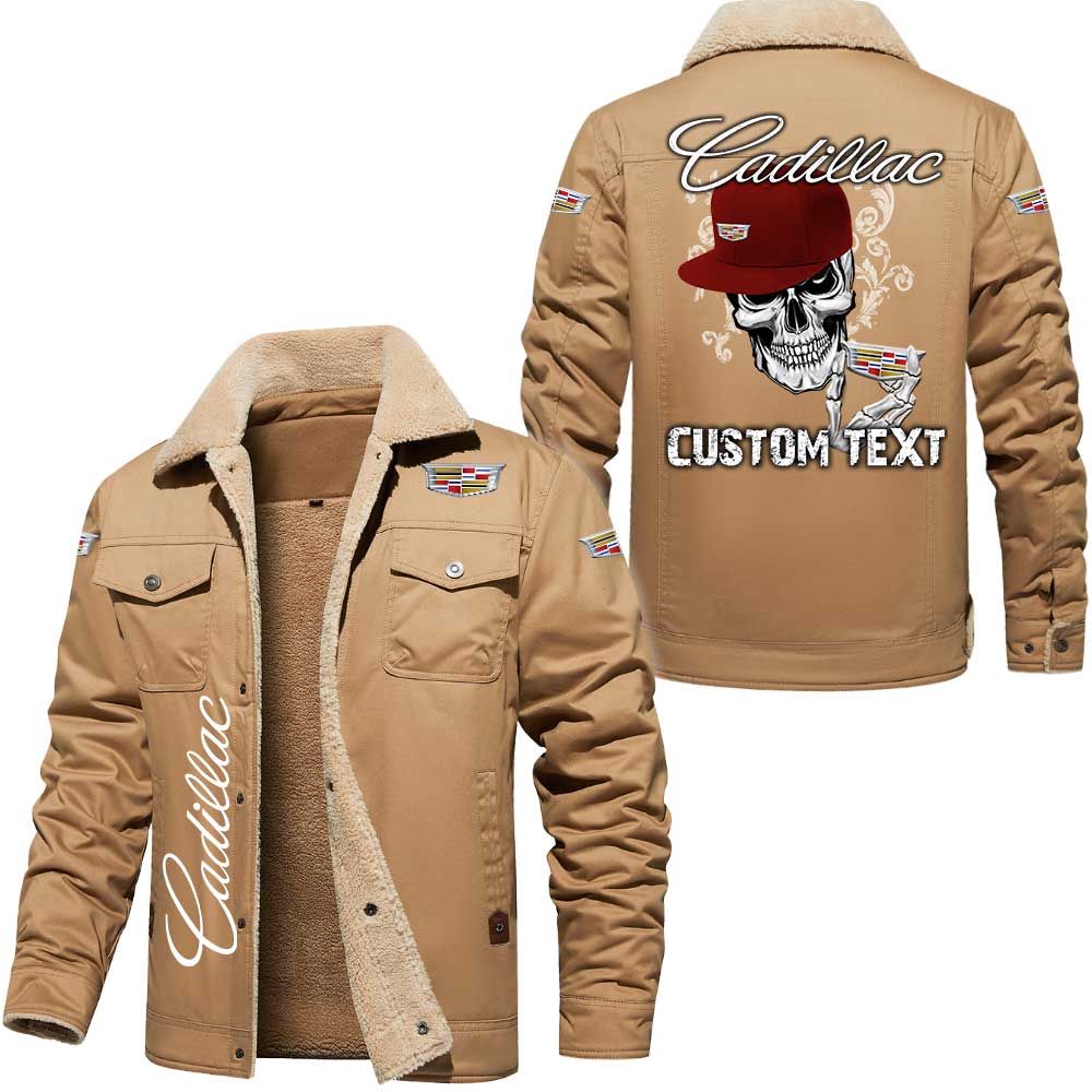 Cadillac Skull Logo Custom Text Cargo Fleece Lined Cotton Jacket
