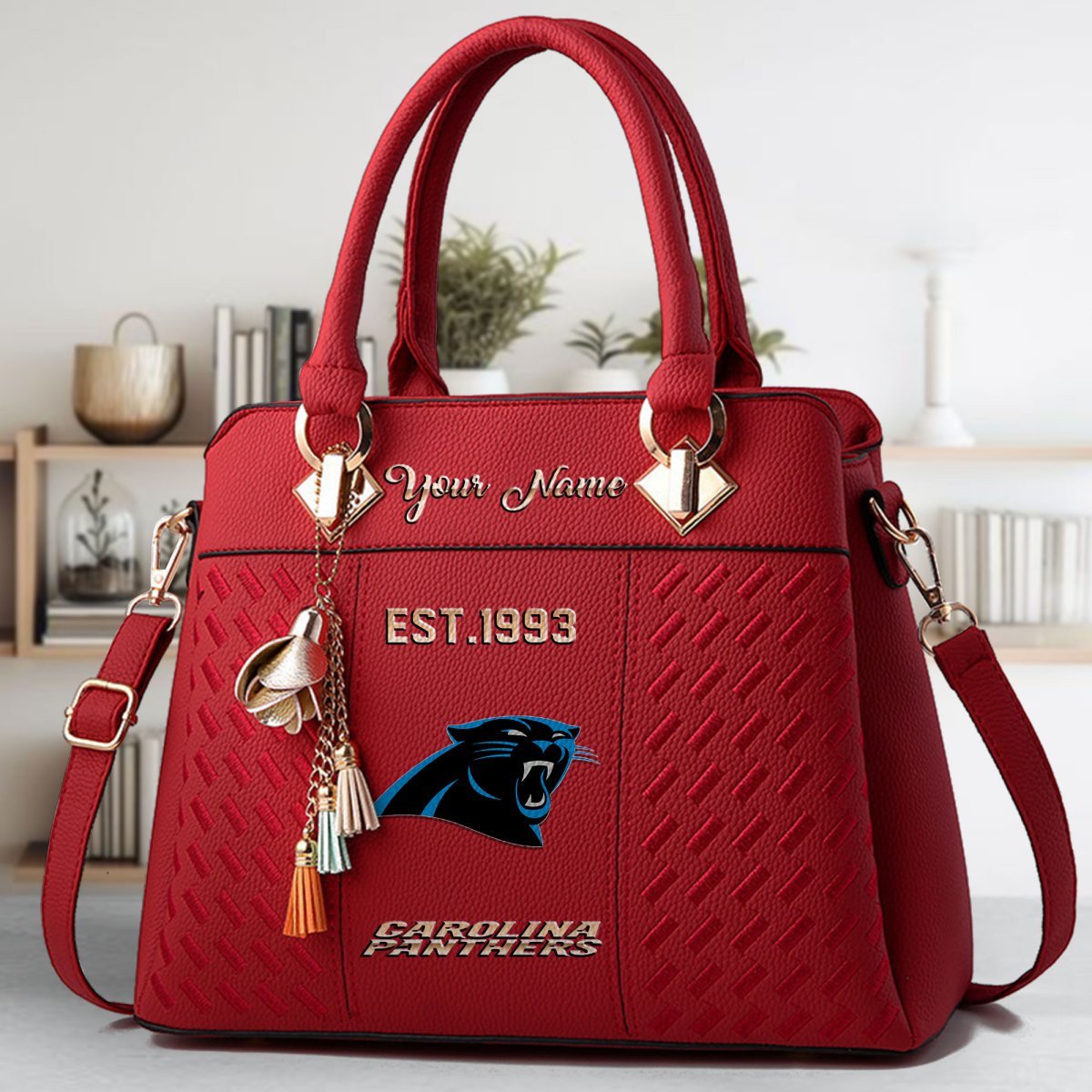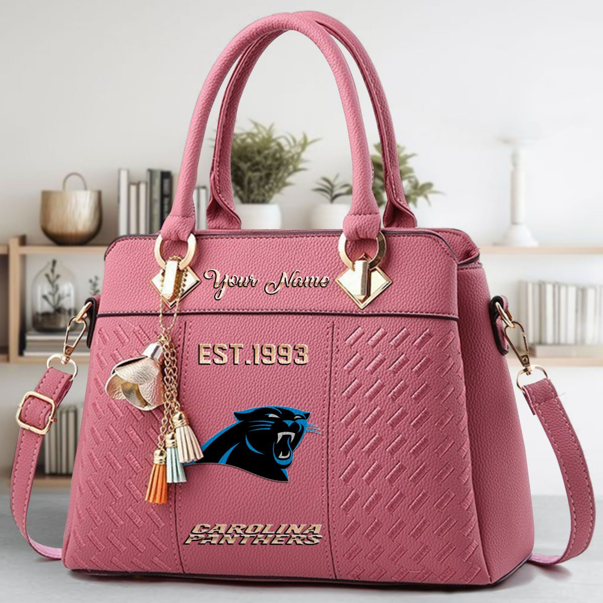 Carolina Panthers Crossbody Zip Handbag With Tassel Custom Name For Women