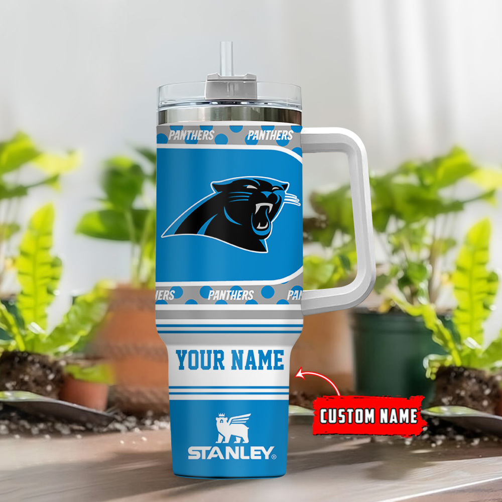 Carolina Panthers Nfl Custom Stanley Quencher 40Oz Stainless Steel Tumbler With Handle