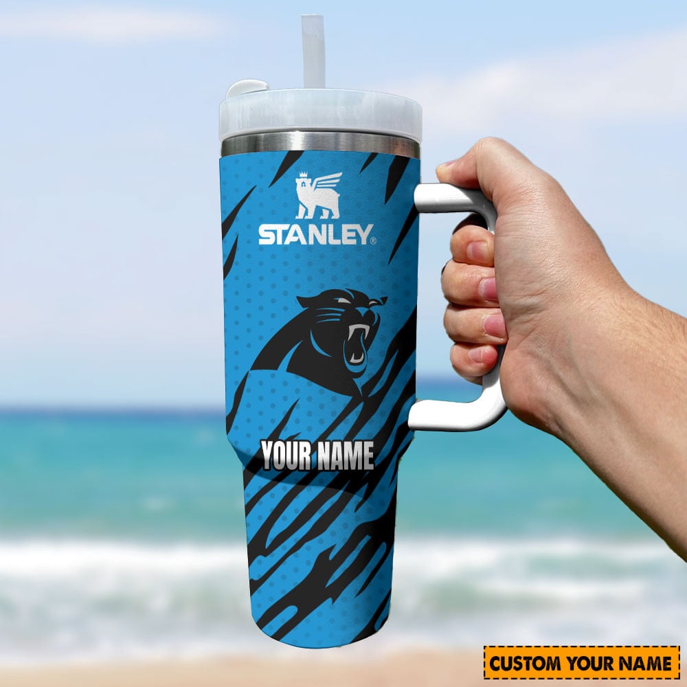 Carolina Panthers Nfl Custom Stanley Quencher 40Oz Stainless Steel Tumbler With Handle