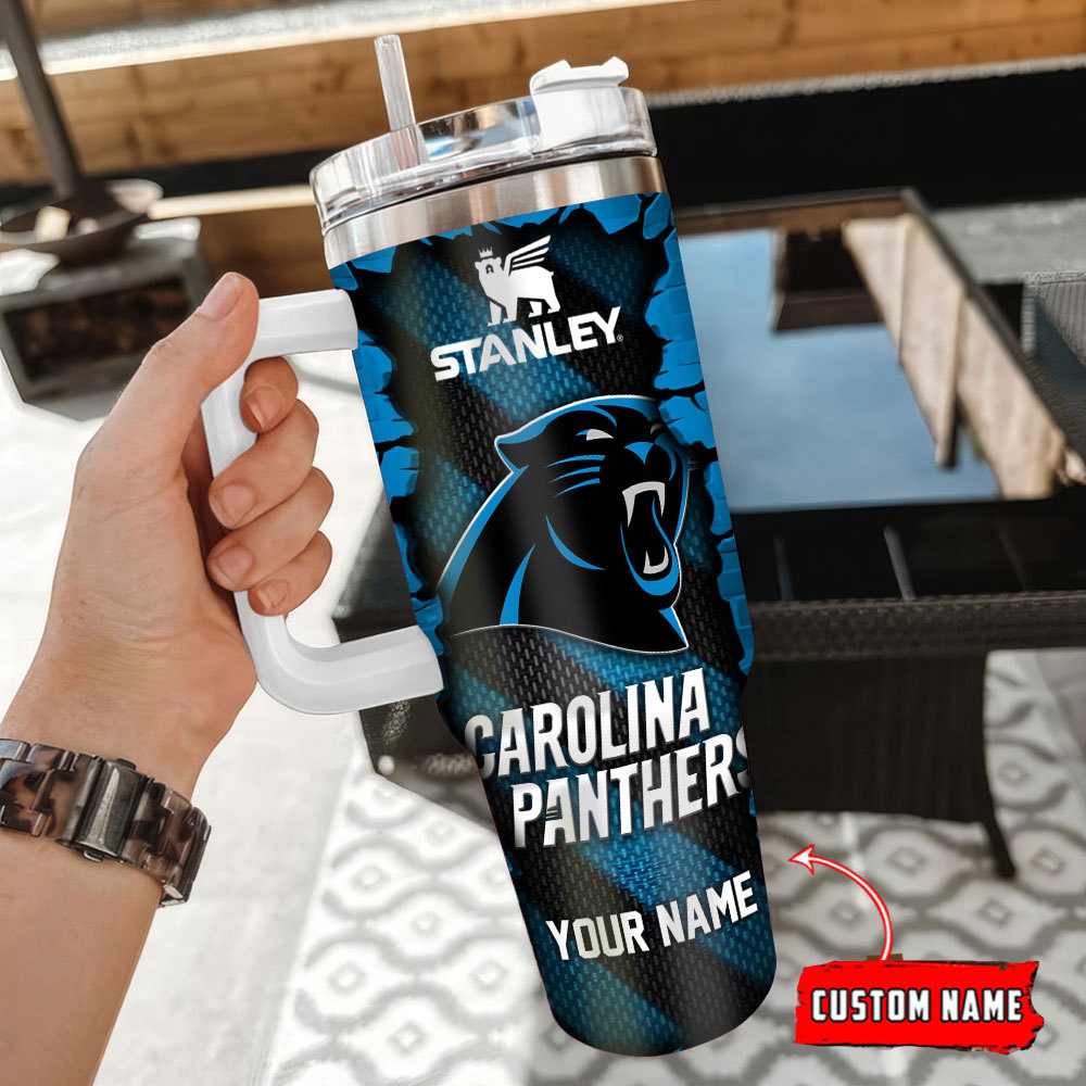 Carolina Panthers Nfl Custom Stanley Quencher 40Oz Stainless Steel Tumbler With Handle