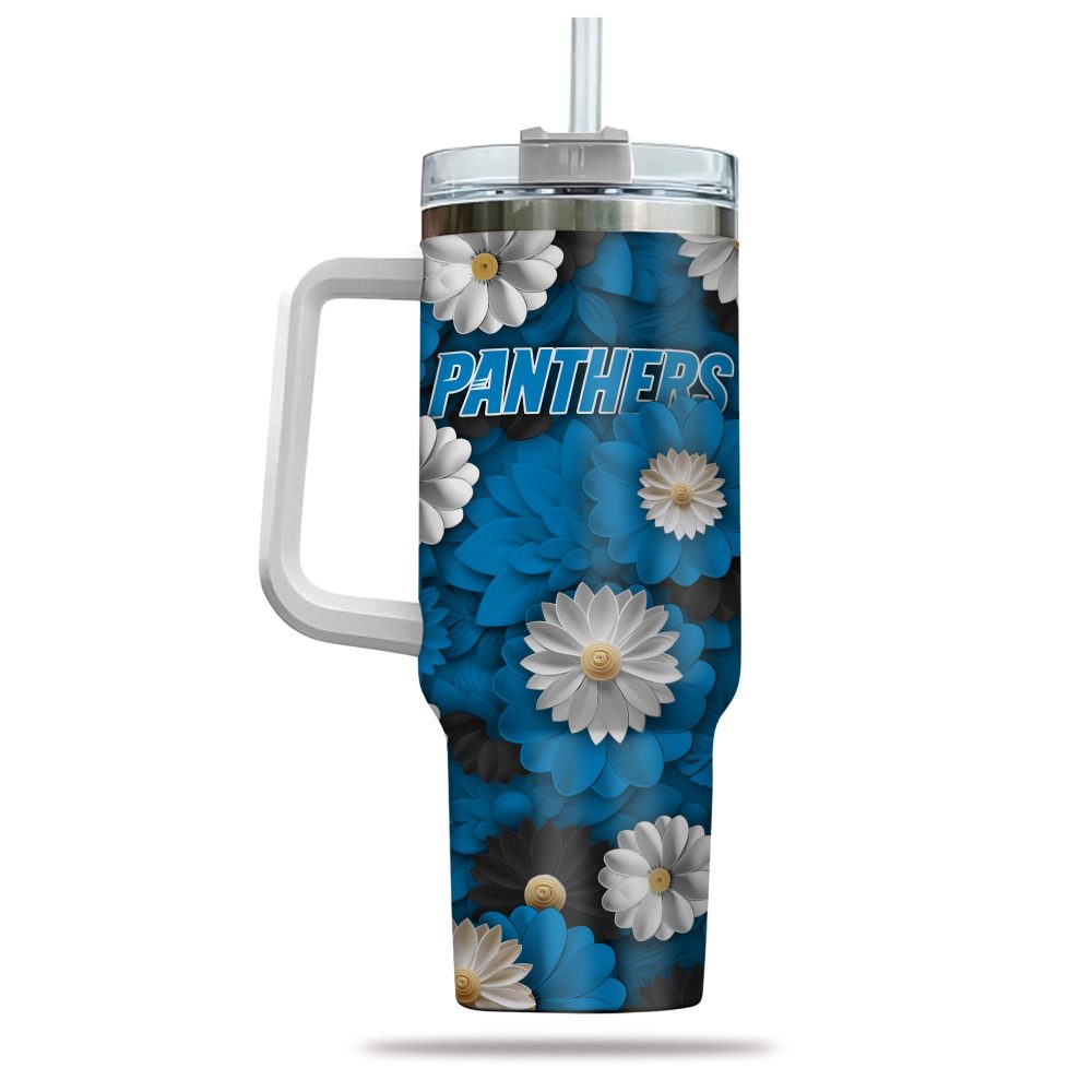 Carolina Panthers Nfl Flowers Custom Stanley Quencher 40Oz Stainless Steel Tumbler With Handle