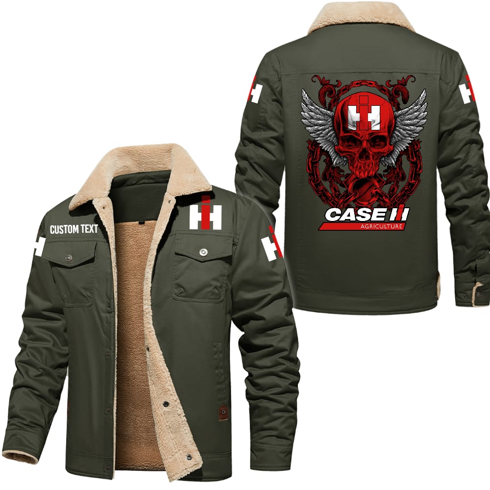 Case IH Custom Name Skull Design Cargo Fleece Lined Cotton Jacket