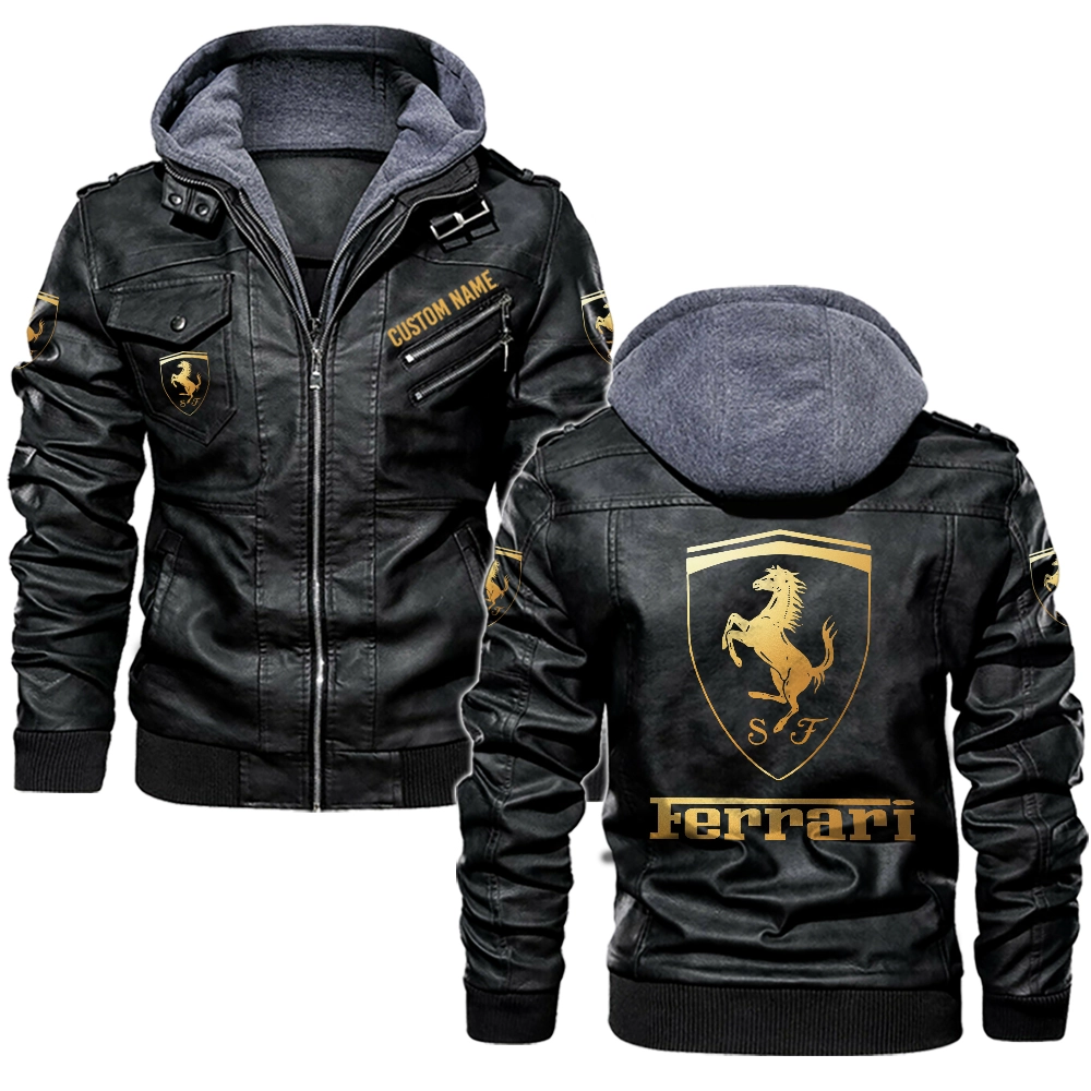 Case IH Golden Logo Custom Hooded Leather Jacket Brown