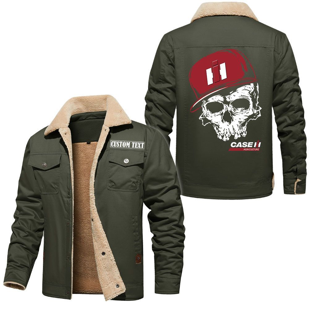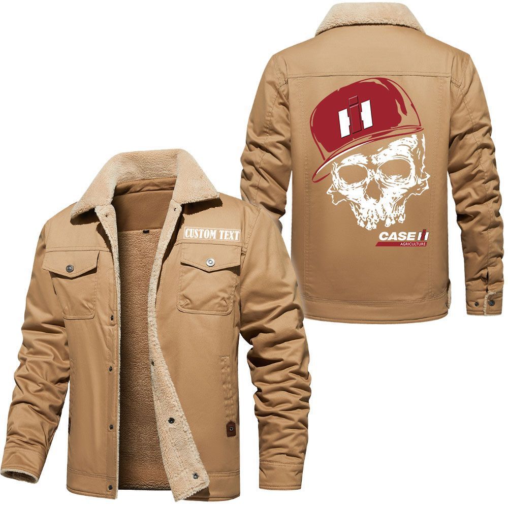 Case IH Logo Custom Name Cargo Fleece Lined Cotton Jacket Personalized Outerwear with Skull Design