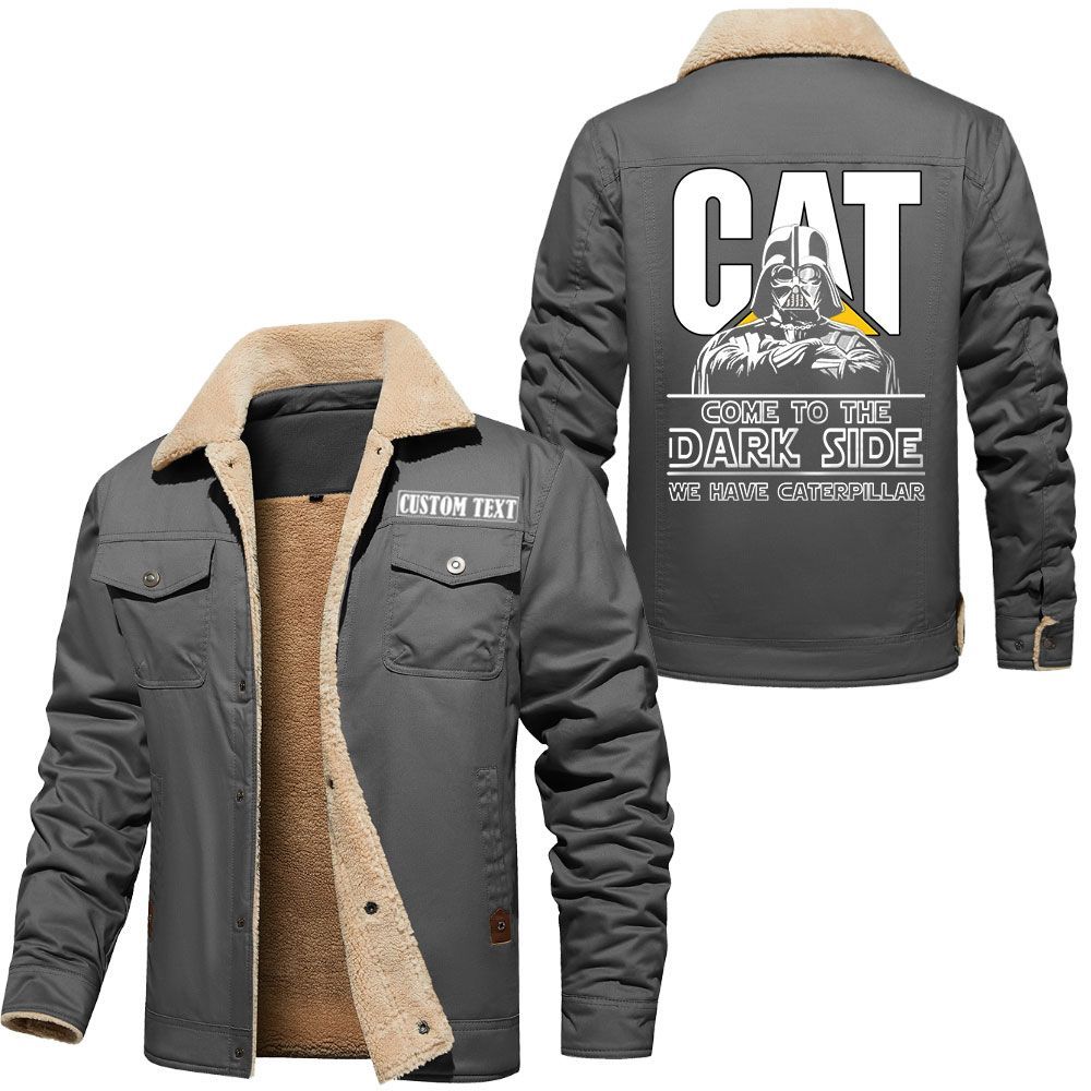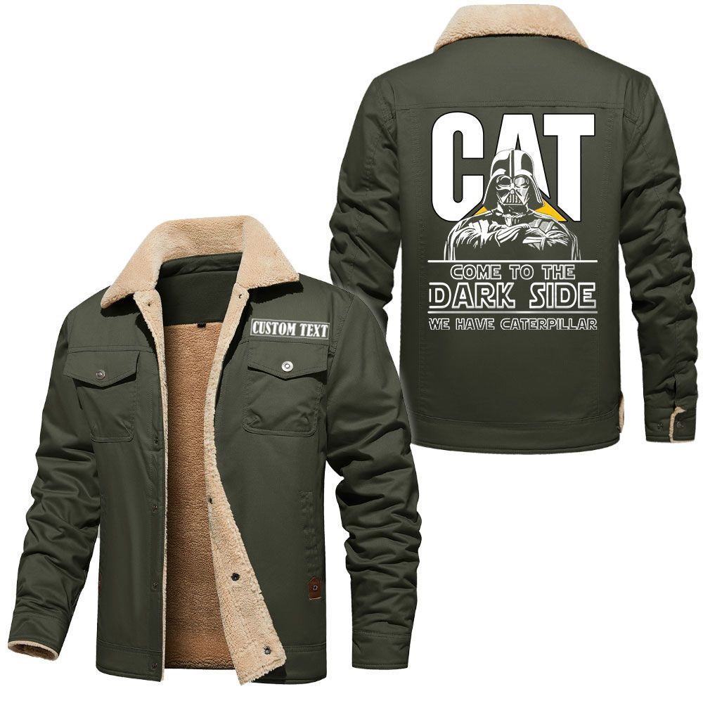 Caterpillar Inc Logo Custom Name Cargo Fleece Lined Cotton Jacket Personalized Outerwear with Dark Side Star Wars Design