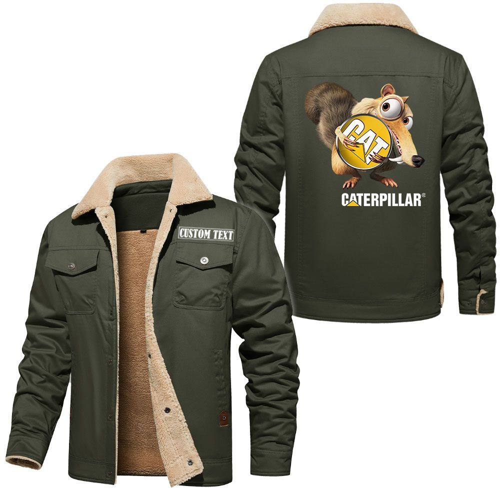 Caterpillar Inc Logo Custom Name Cargo Fleece Lined Cotton Jacket Scrat Ice Age Design Personalized Outerwear