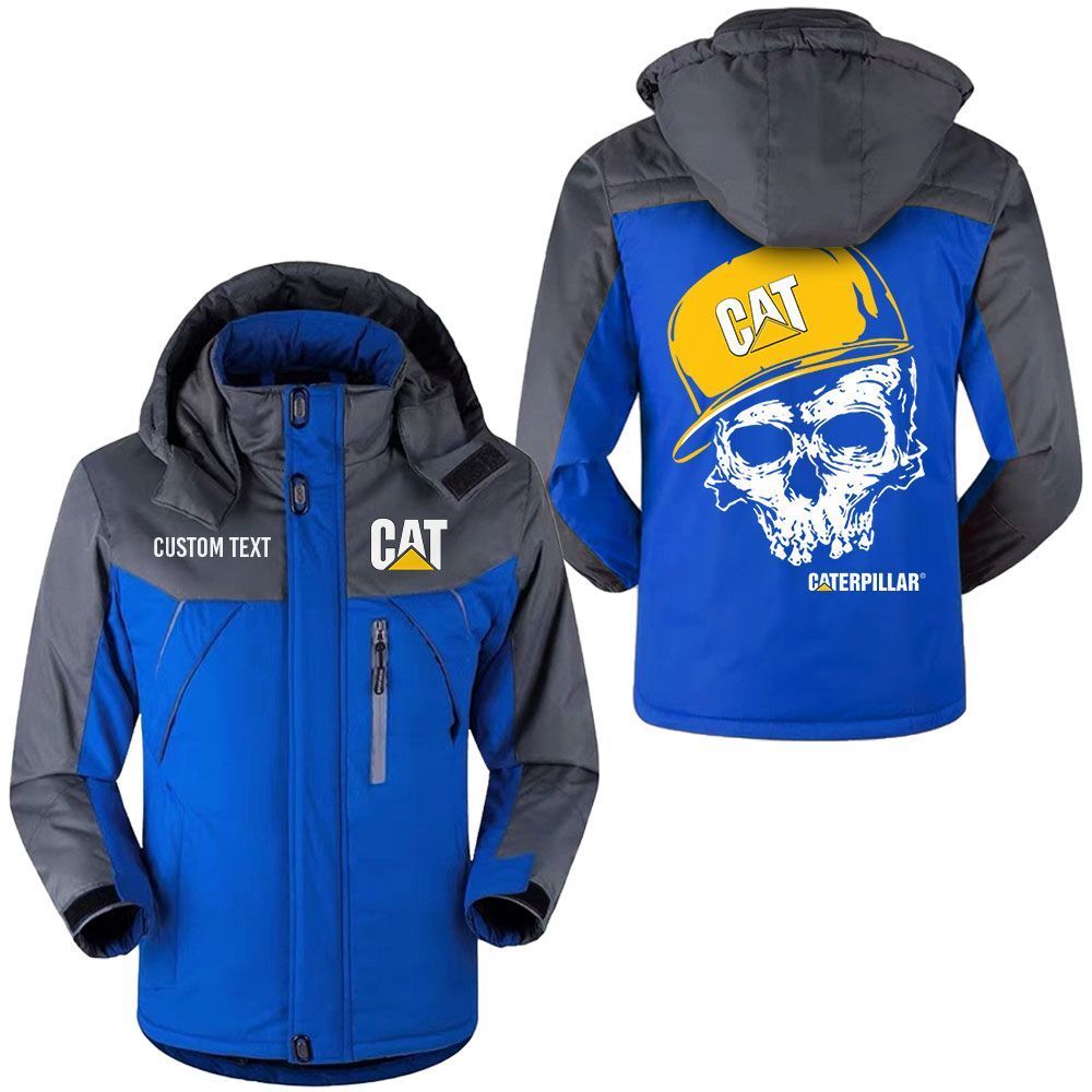Caterpillar Inc Logo Custom Name Skull Design Hooded Windbreaker Ski Jacket