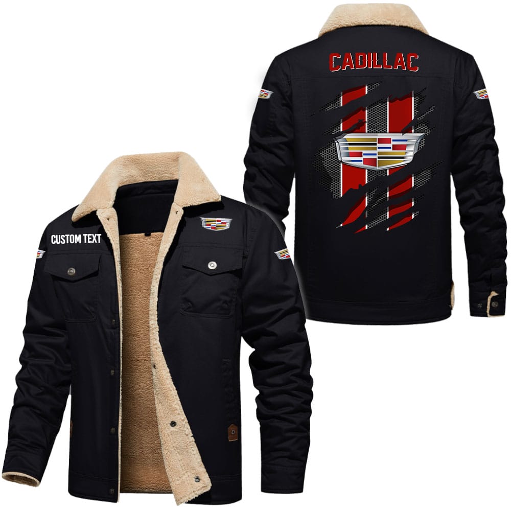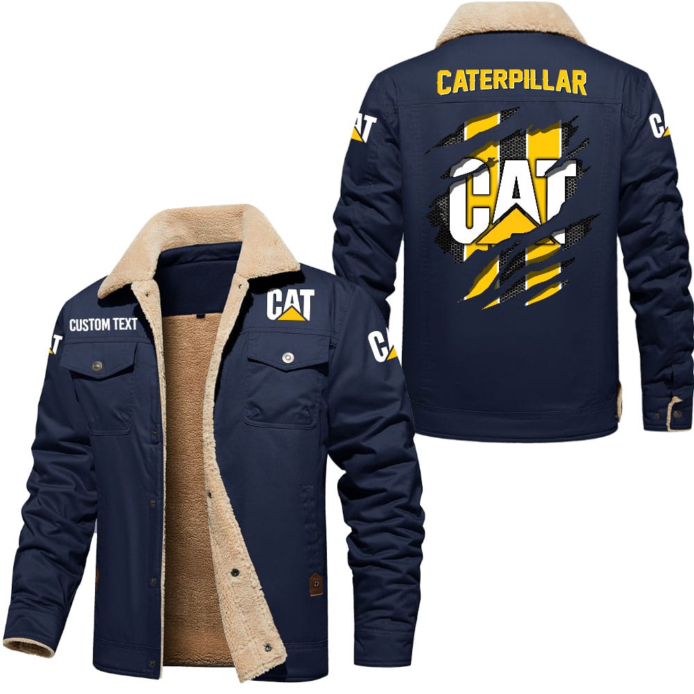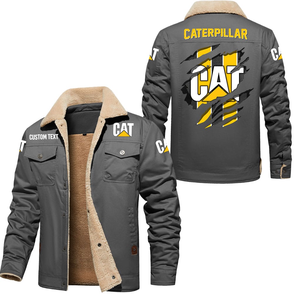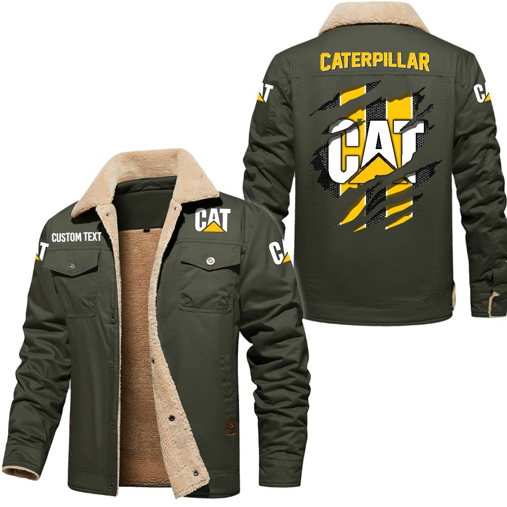 Caterpillar Logo Custom Name Cargo Fleece Lined Cotton Jacket