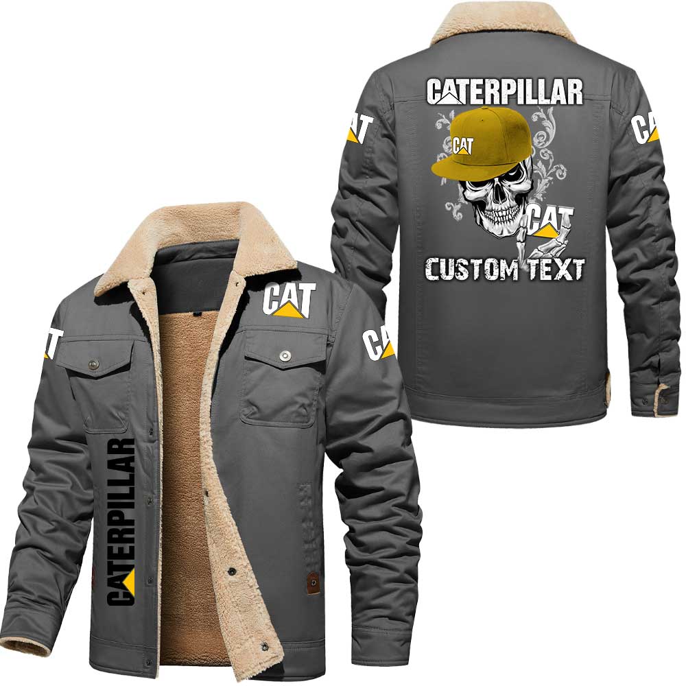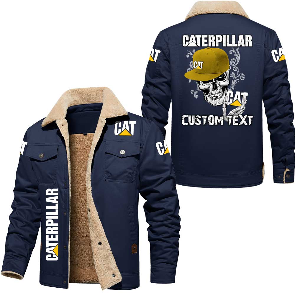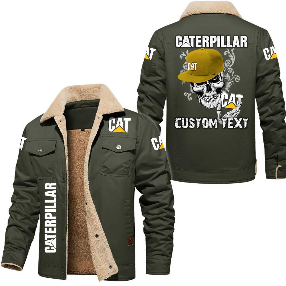 Caterpillar Skull Custom Name Cargo Fleece Lined Cotton Jacket