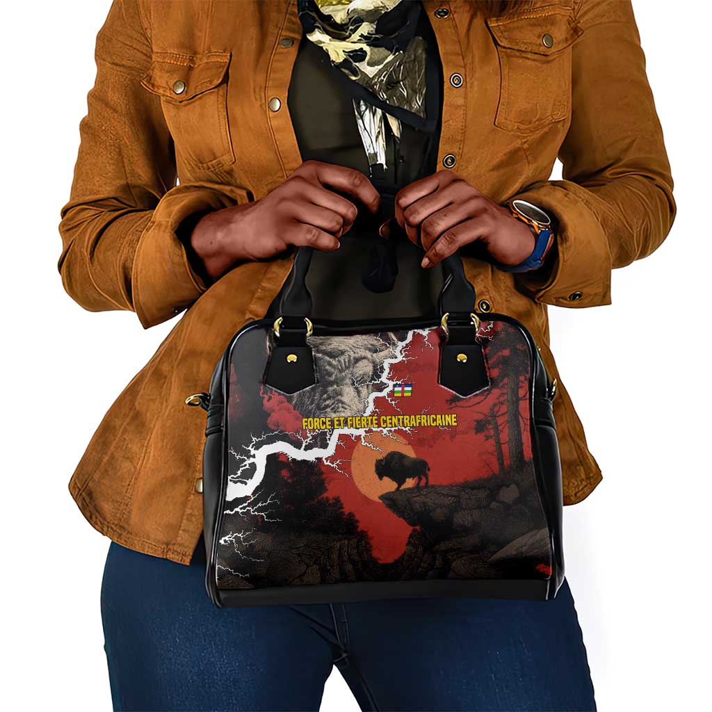 Central African Republic Shoulder Handbag Red Black Nature Design And Buffalo