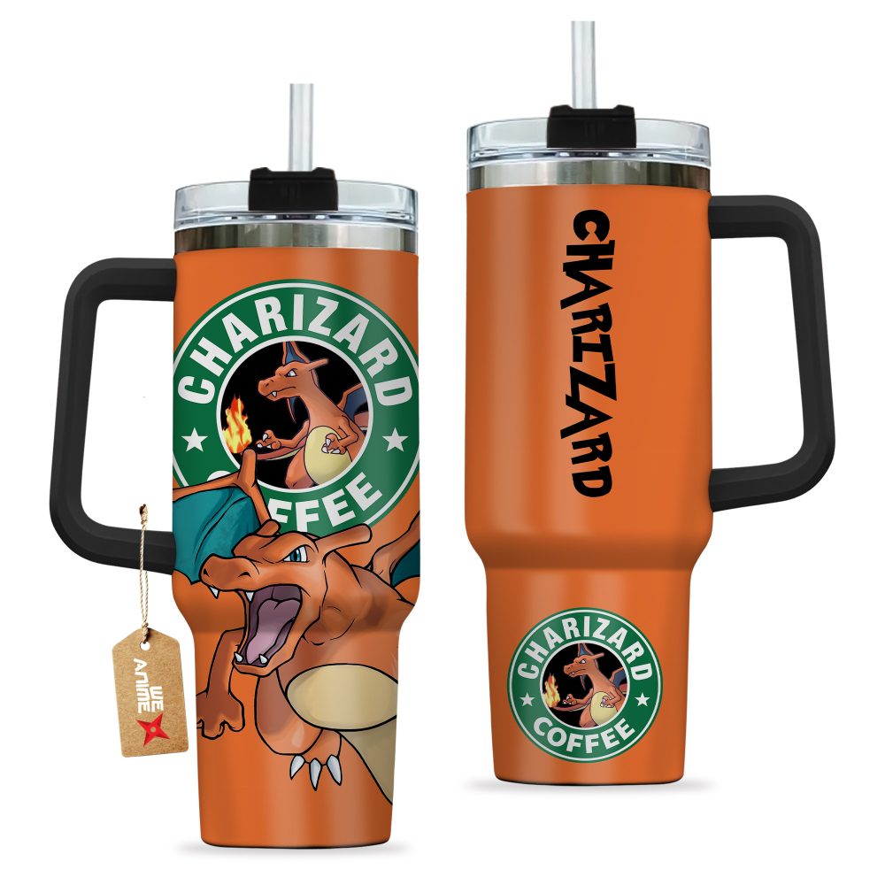 Charizard Coffee Pokemon Anime Custom Stanley Quencher 40Oz Stainless Steel Tumbler With Handle