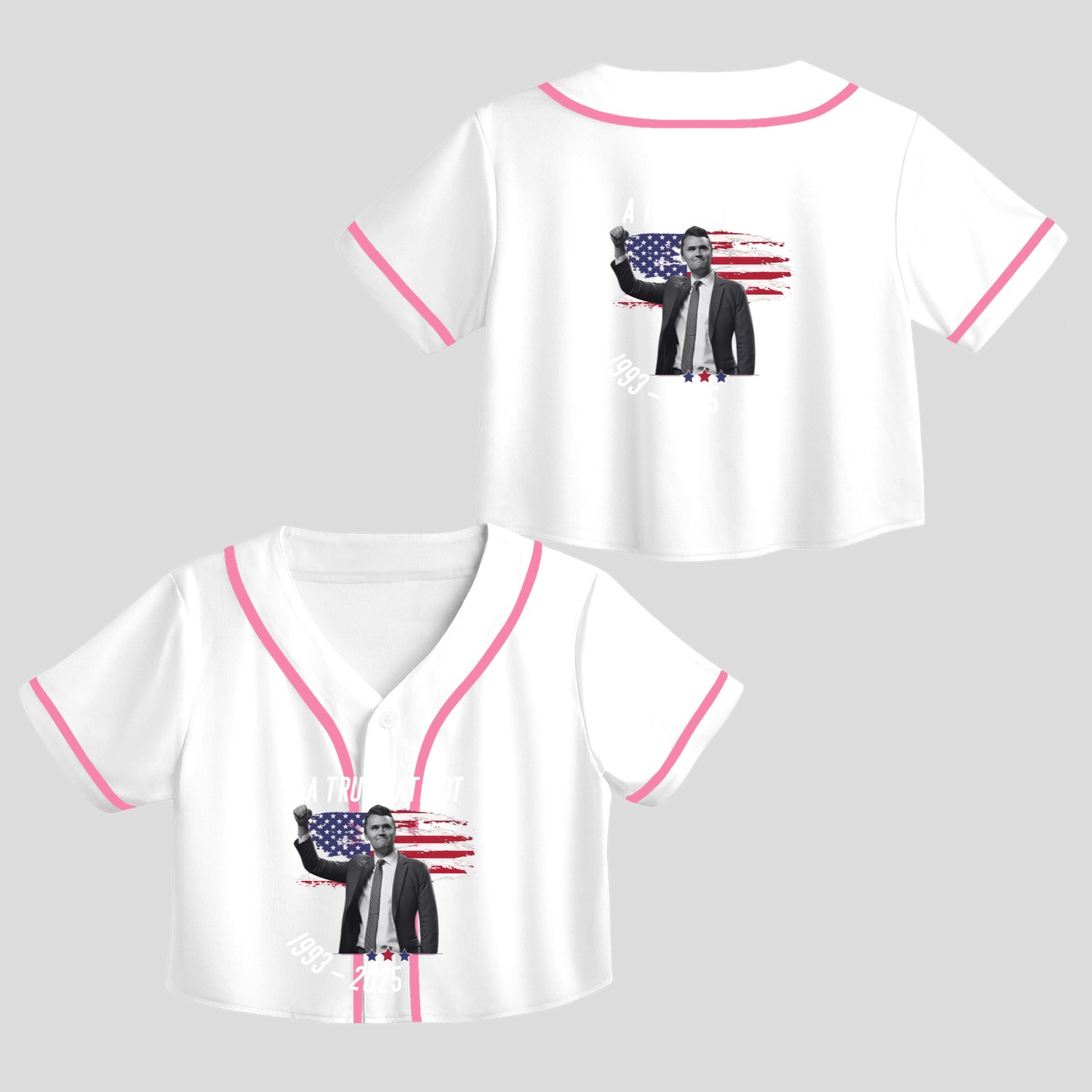 Charlie Kirk A True Patriot Saying Rip Memorial Crop Top Baseball Jersey