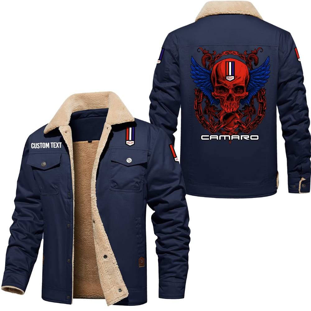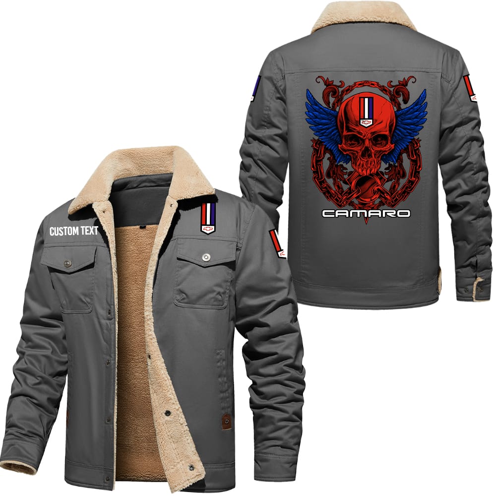 Chevrolet Camaro Custom Name Skull Design Cargo Fleece Lined Cotton Jacket