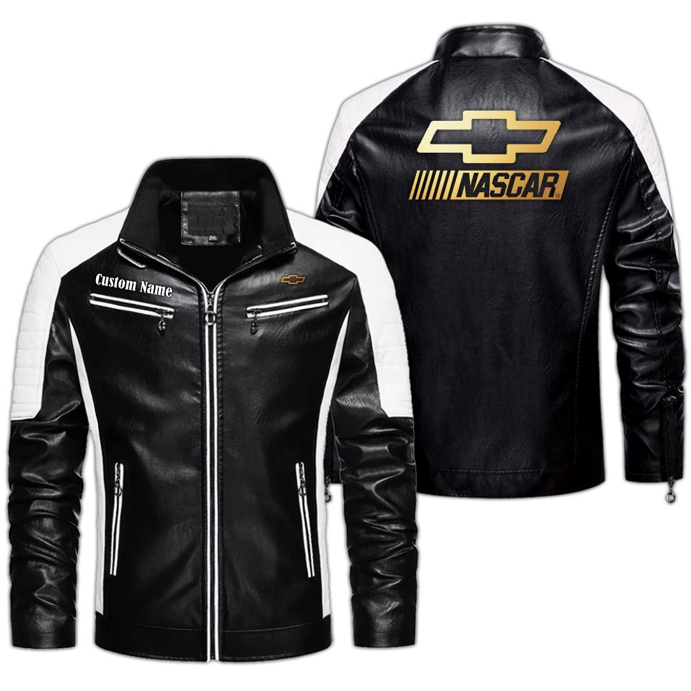Chevrolet Camaro Golden Logo Leather Biker Jacket Custom Name And Logo