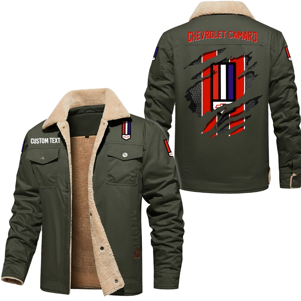 Chevrolet Camaro Logo Custom Name Cargo Fleece Lined Cotton Jacket