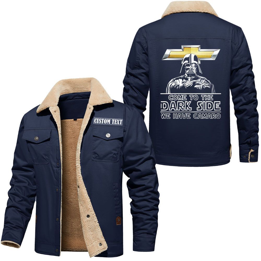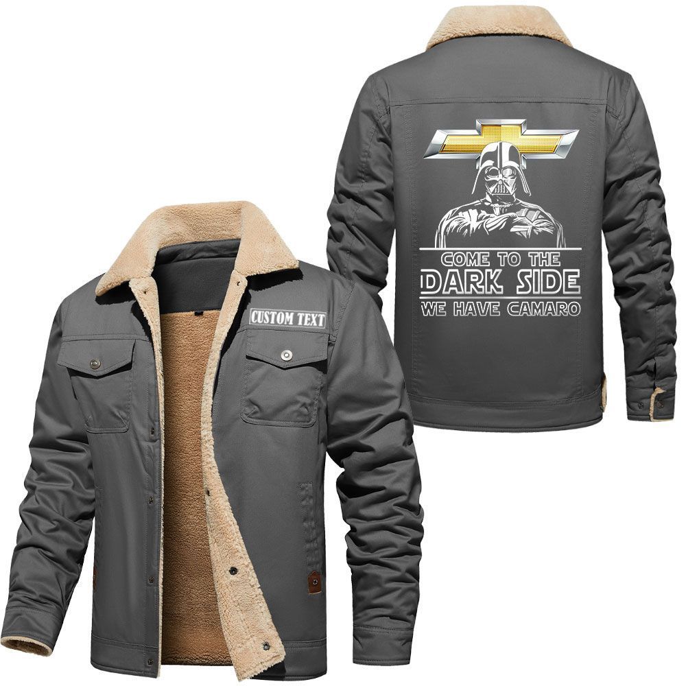 Chevrolet Camaro Logo Custom Name Cargo Fleece Lined Cotton Jacket Personalized Outerwear with Dark Side Star Wars Design