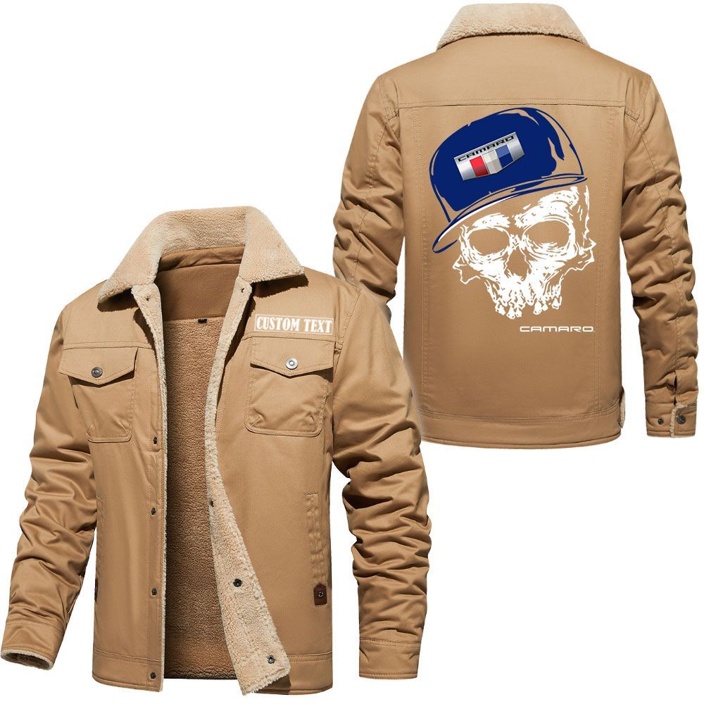 Chevrolet Camaro Logo Custom Name Cargo Fleece Lined Cotton Jacket Personalized Outerwear with Skull Design