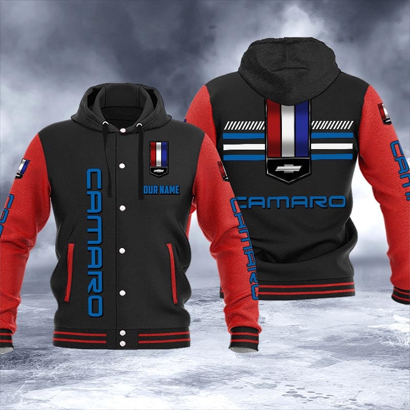 Chevrolet Camaro Personalized Hooded Baseball Jacket For Fans Dark Red