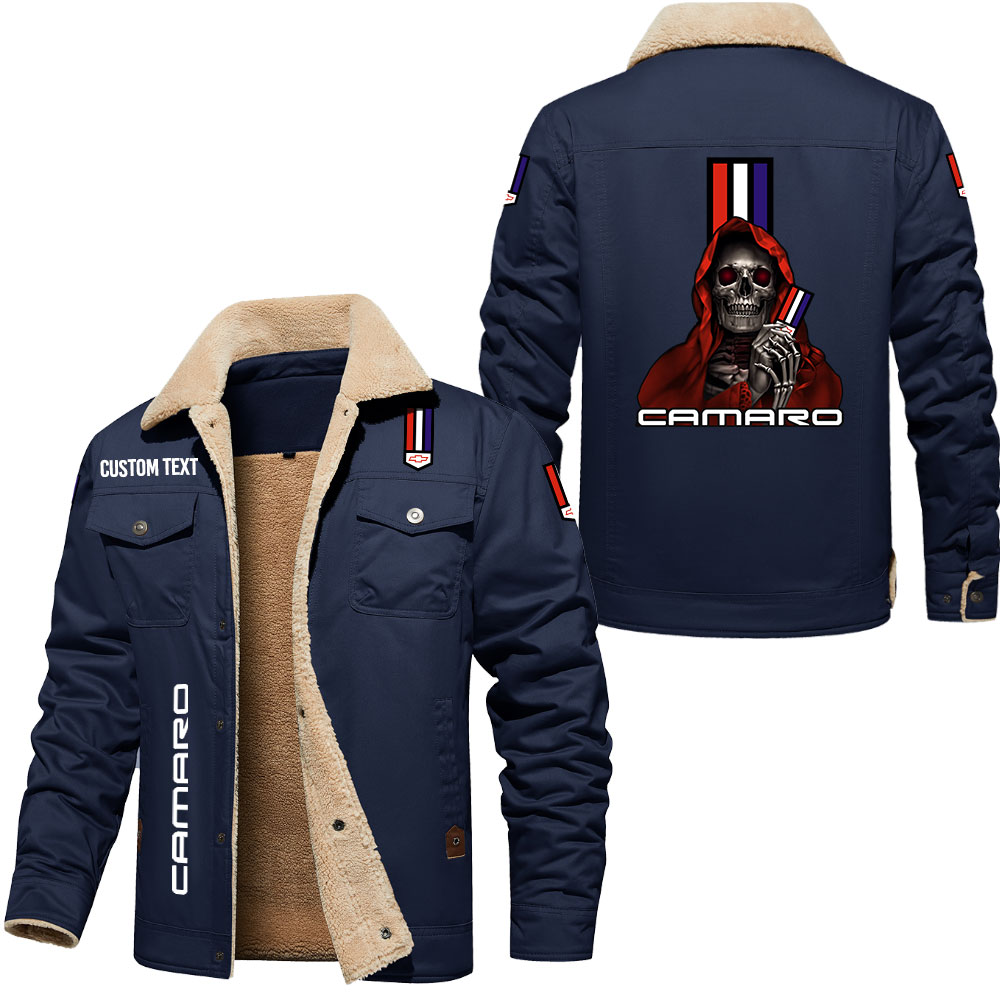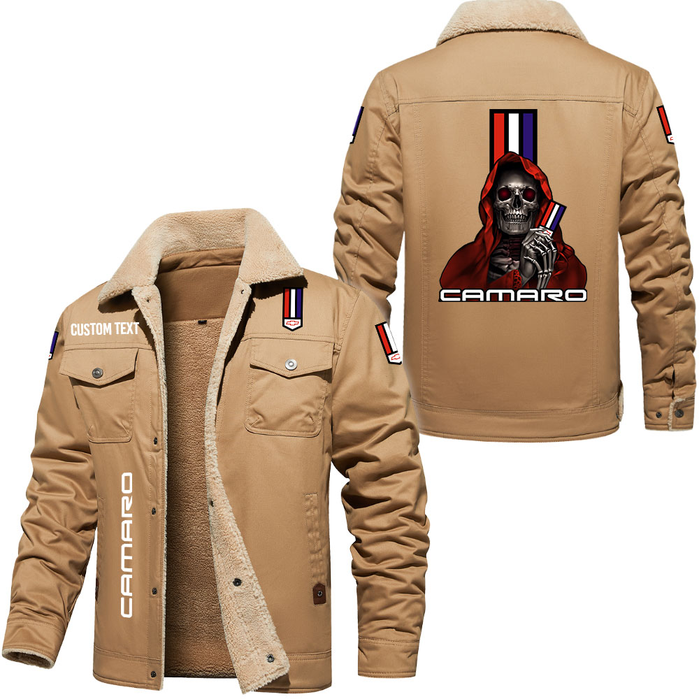 Chevrolet Camaro Skull Art Print Custom Name Cargo Fleece Lined Cotton Jacket