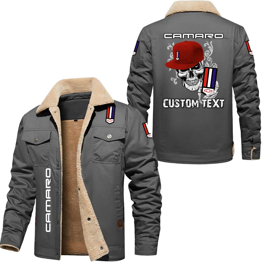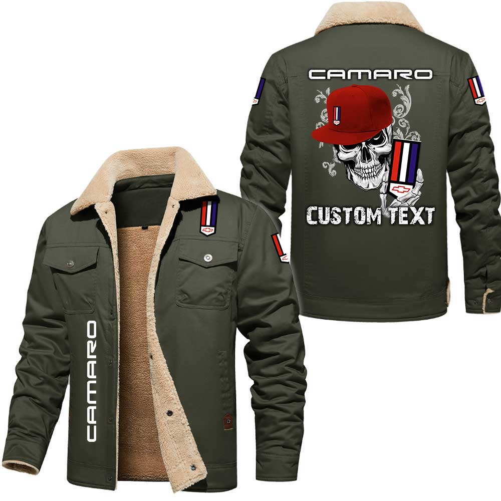 Chevrolet Camaro Skull Custom Name Cargo Fleece Lined Cotton Jacket