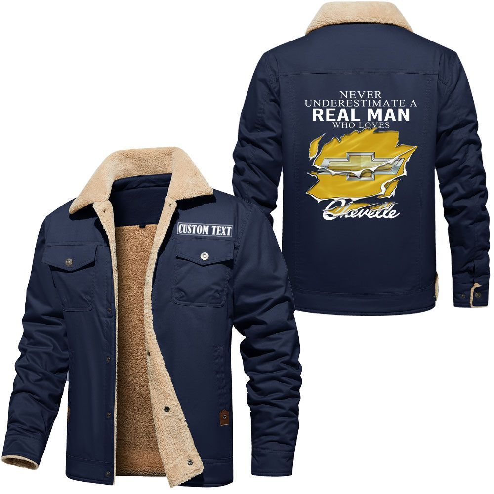 Chevrolet Chevelle Logo Custom Name Cargo Fleece Lined Cotton Jacket A Real Man Who Loves Personalized Outerwear