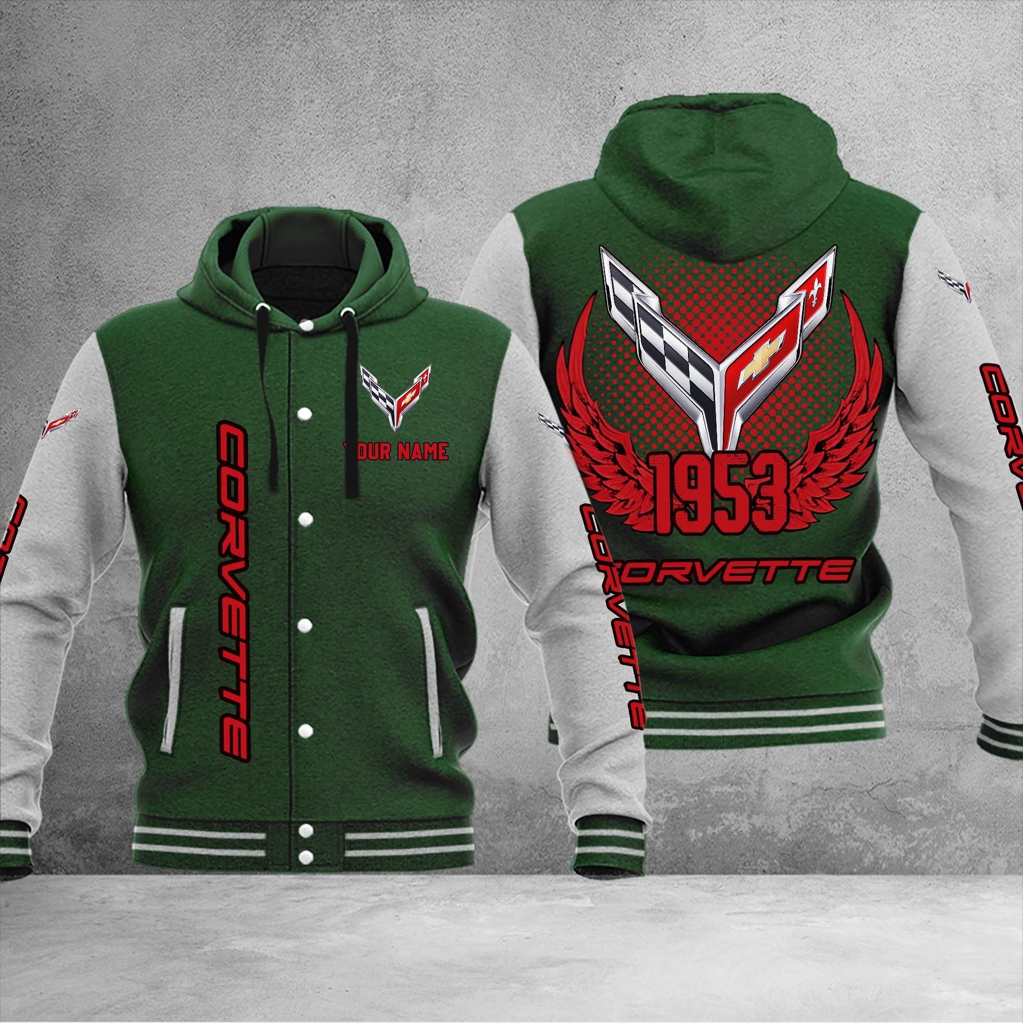 Chevrolet Corvette Logo 1953 Personalized Hooded Baseball Jacket For Fans Orange
