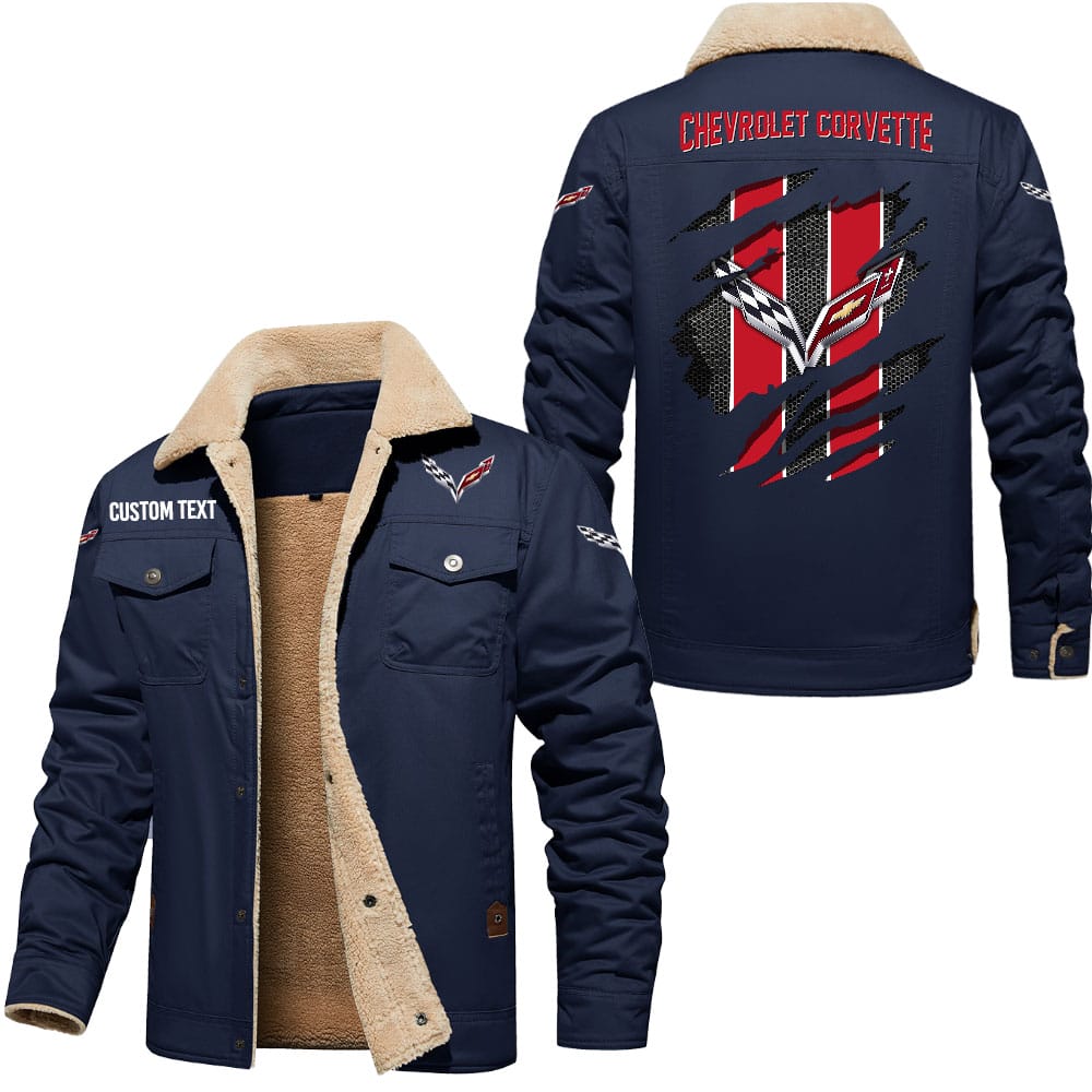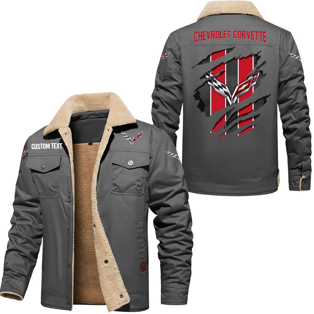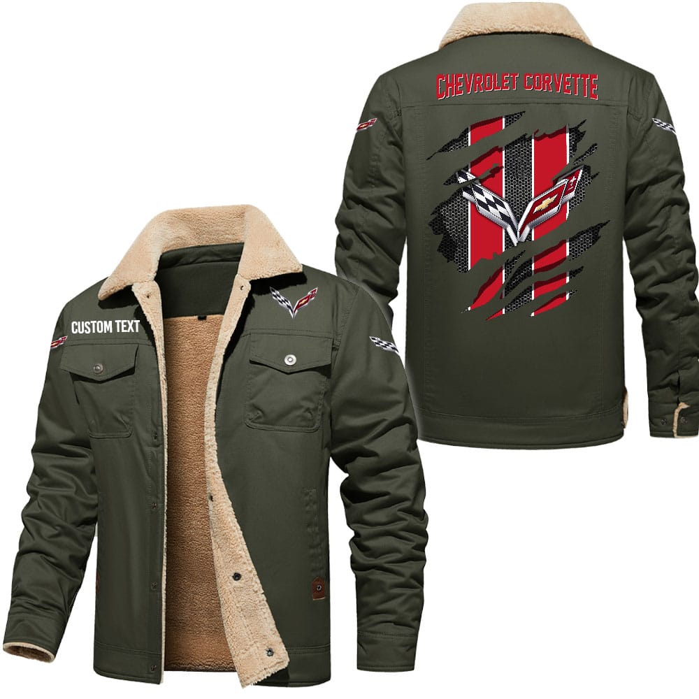 Chevrolet Corvette Logo Custom Name Cargo Fleece Lined Cotton Jacket