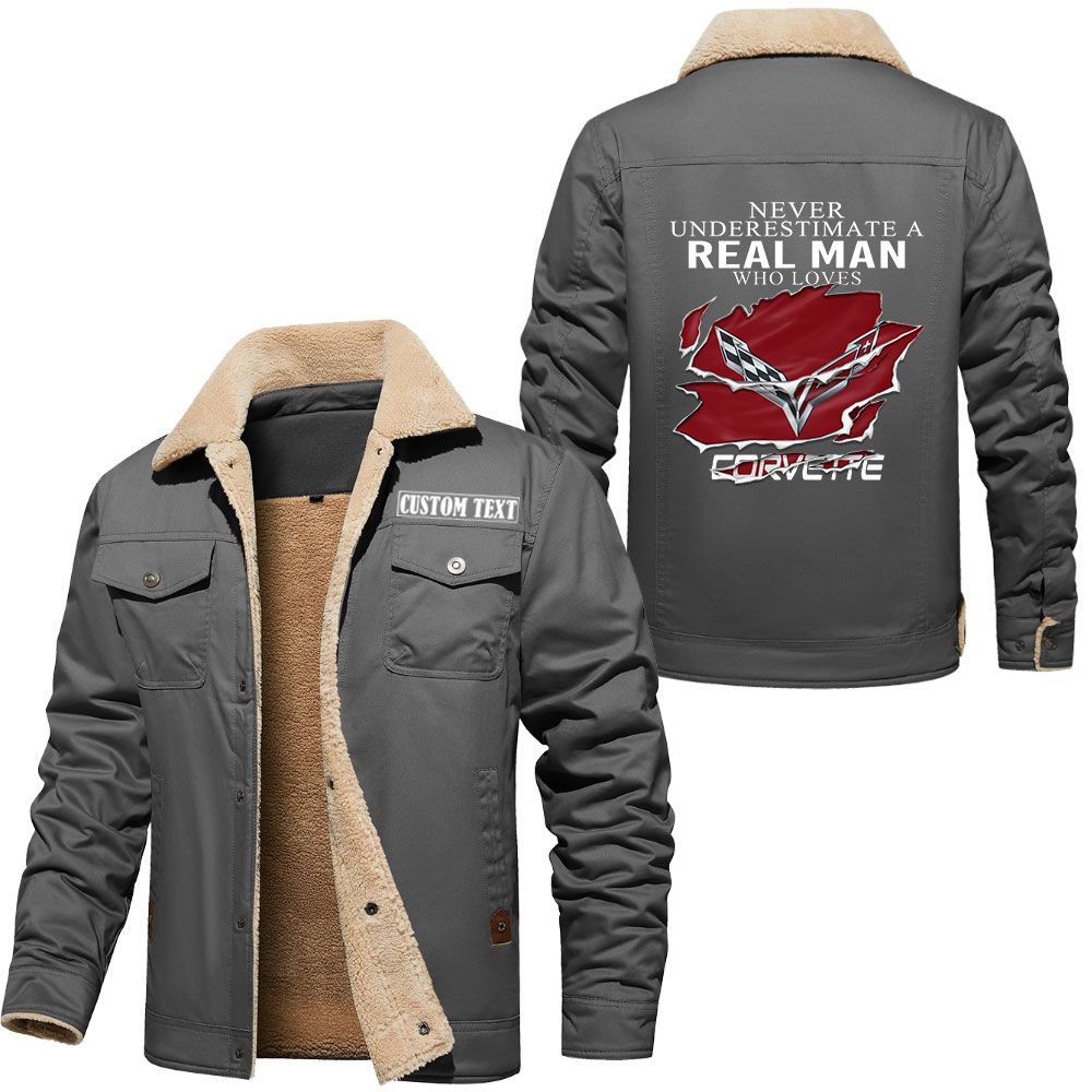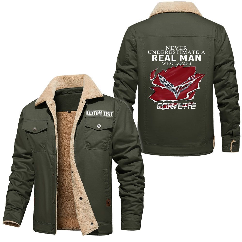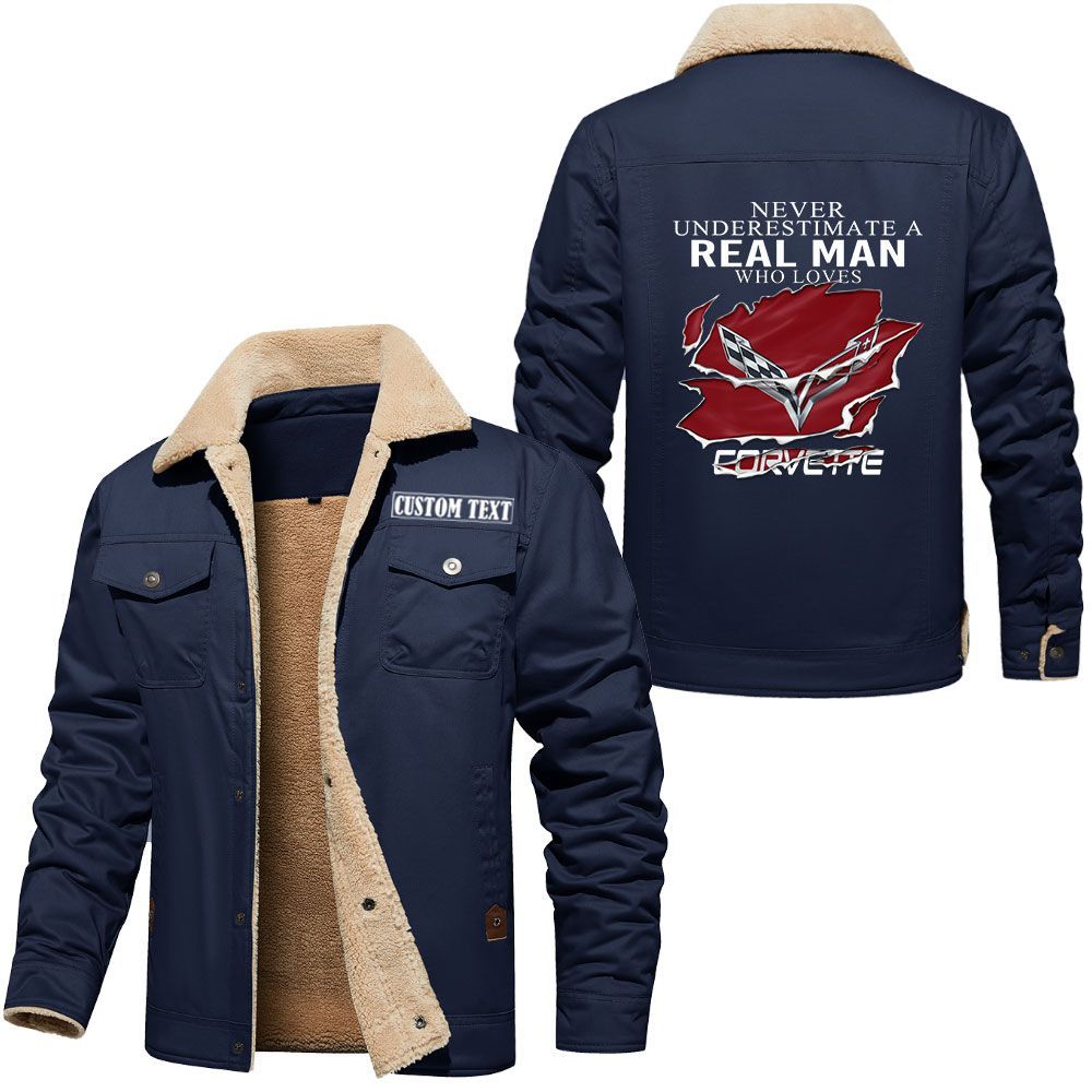 Chevrolet Corvette Logo Custom Name Cargo Fleece Lined Cotton Jacket A Real Man Who Loves Personalized Outerwear