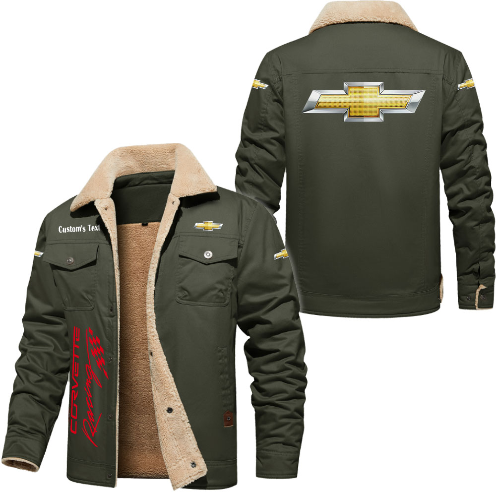 Chevrolet Corvette Racing Logo Custom Text Cargo Fleece Lined Cotton Jacket