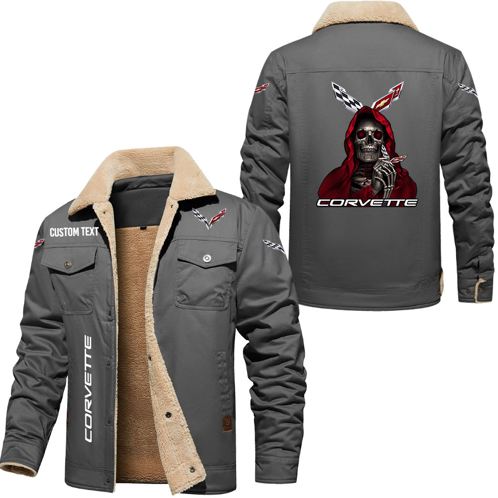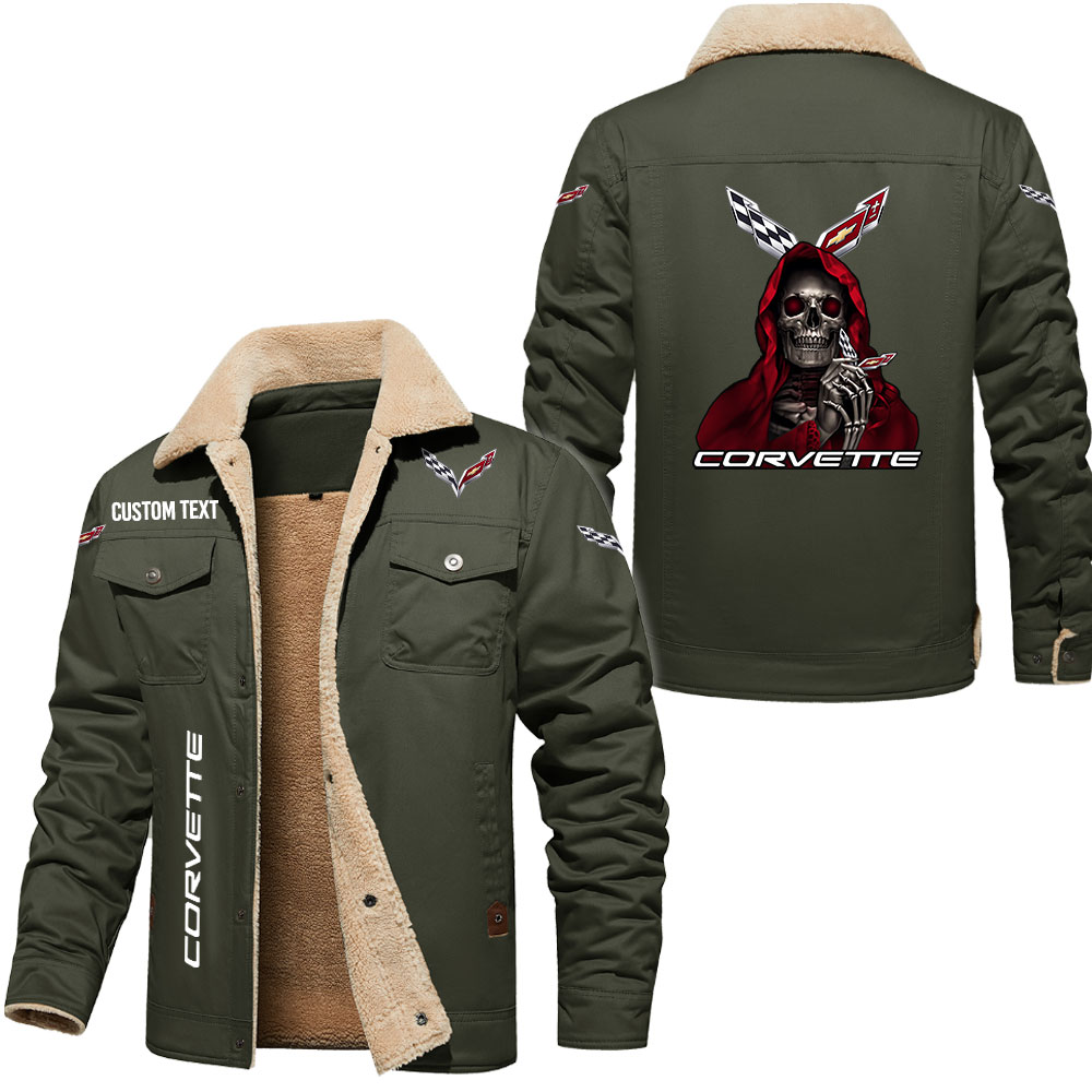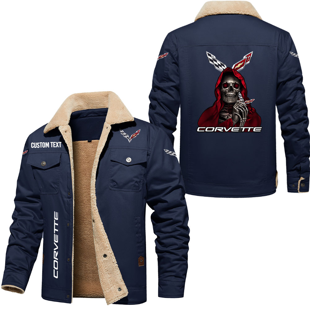 Chevrolet Corvette Skull Art Print Custom Name Cargo Fleece Lined Cotton Jacket