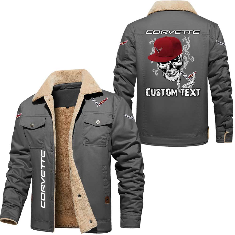 Chevrolet Corvette Skull Custom Name Cargo Fleece Lined Cotton Jacket