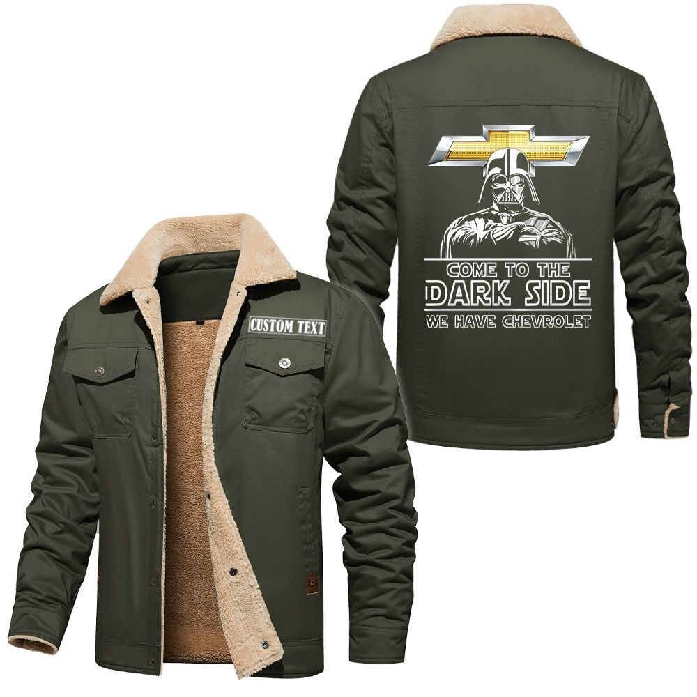 Chevrolet Logo Custom Name Cargo Fleece Lined Cotton Jacket Personalized Outerwear with Dark Side Star Wars Design