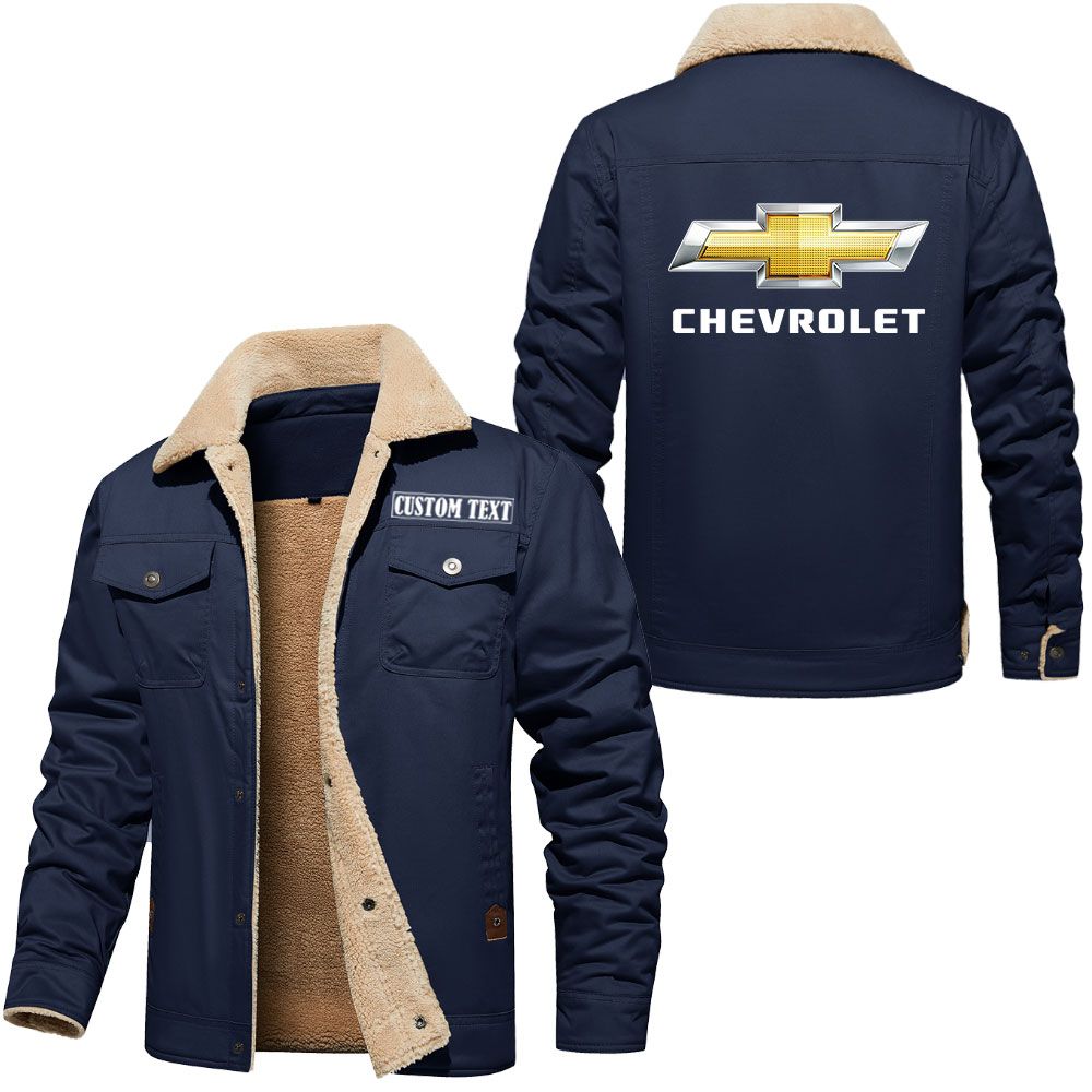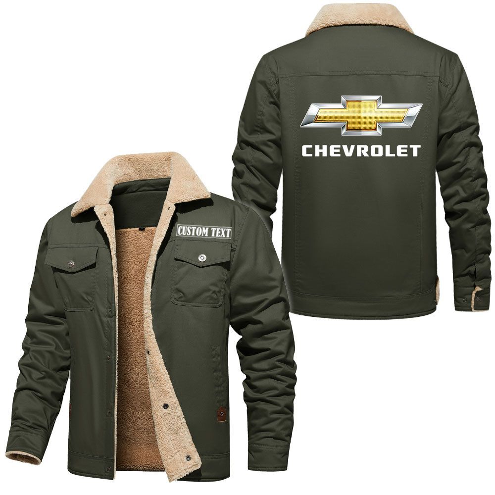 Chevrolet Logo Custom Name Cargo Fleece Lined Cotton Jacket Stylish Warm Personalized Outerwear