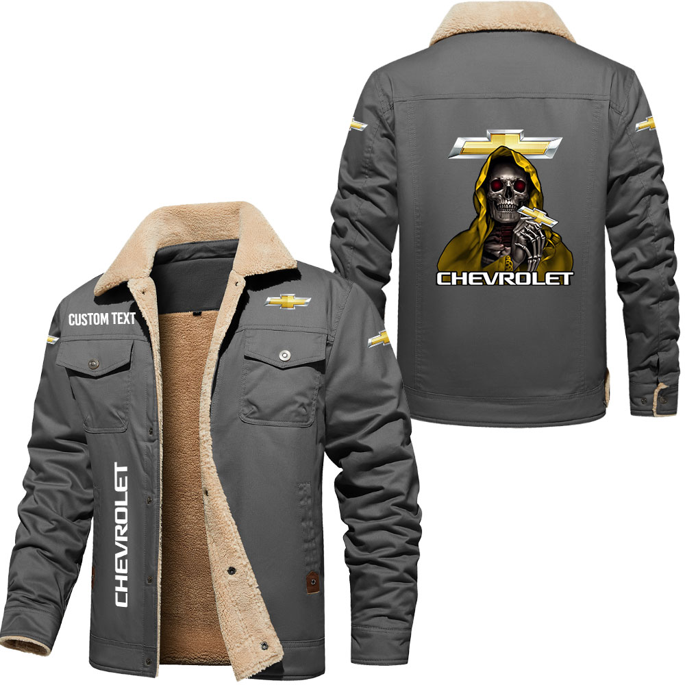 Chevrolet Skull Art Print Custom Name Cargo Fleece Lined Cotton Jacket