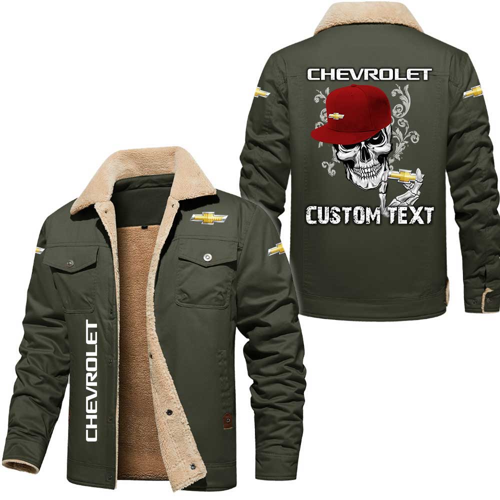 Chevrolet Skull Custom Name Cargo Fleece Lined Cotton Jacket
