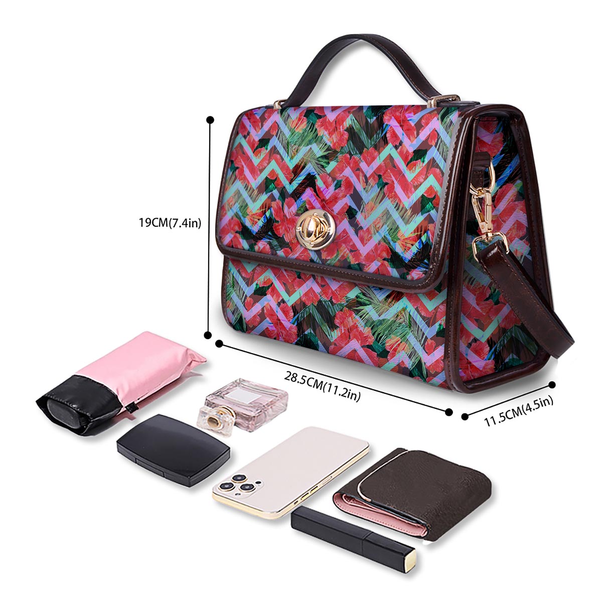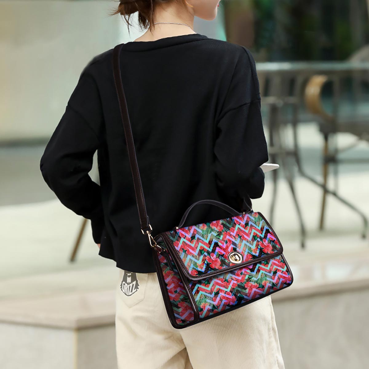 Chevron Red Hibiscus Print Pattern Women’s Satchel Bag