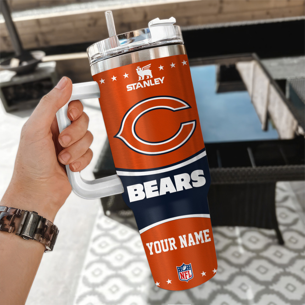 Chicago Bears Nfl Custom Stanley Quencher 40Oz Stainless Steel Tumbler With Handle