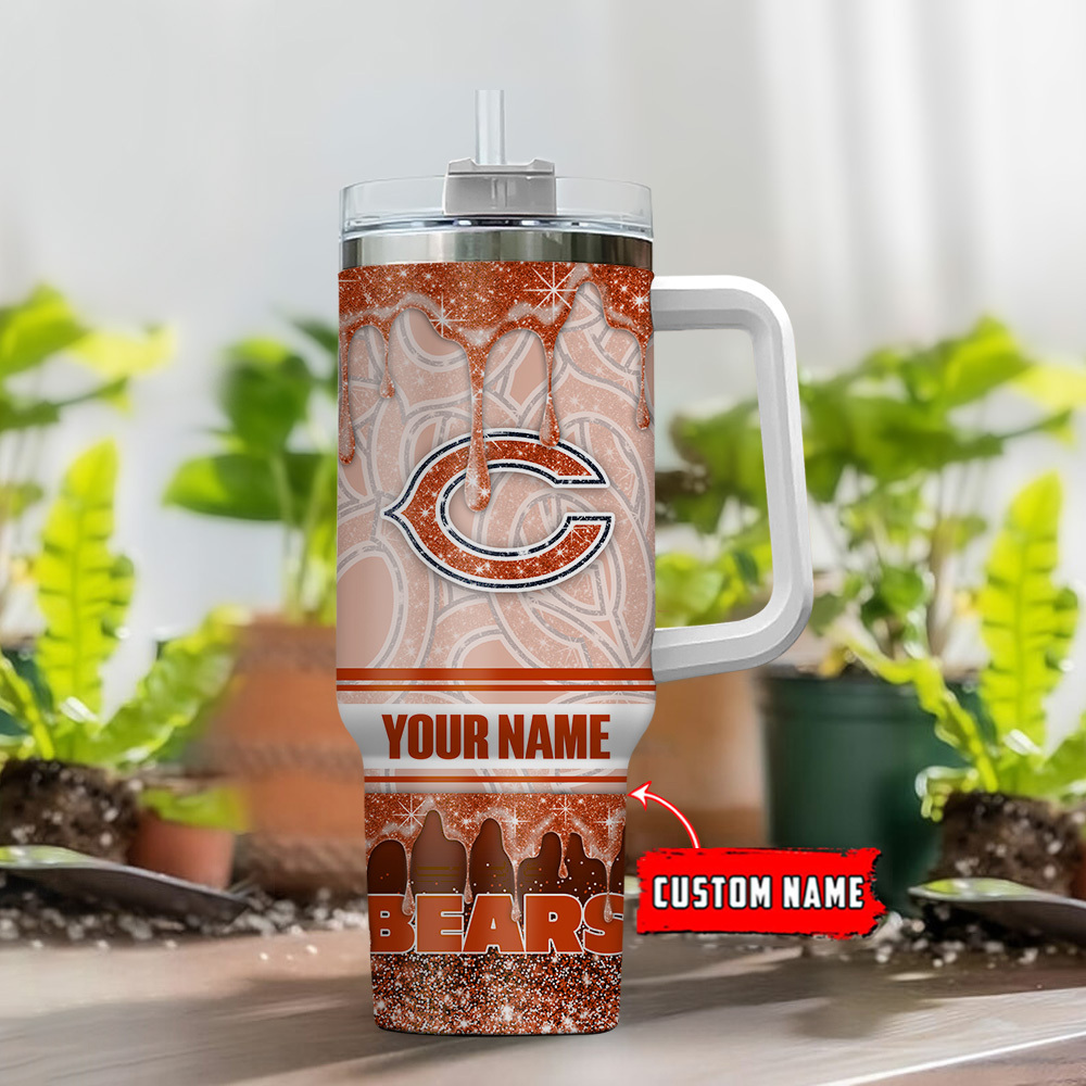 Chicago Bears Nfl Glitter Custom Stanley Quencher 40Oz Stainless Steel Tumbler With Handle