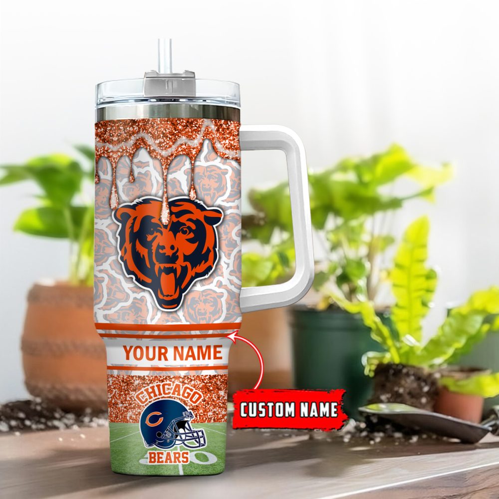 Chicago Bears Nfl Glitter Custom Stanley Quencher 40Oz Stainless Steel Tumbler With Handle