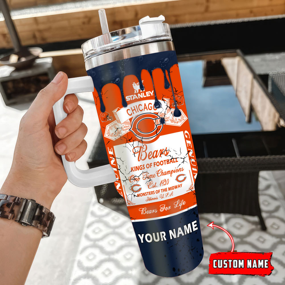Chicago Bears Nfl Kings Of Football Custom Stanley Quencher 40Oz Stainless Steel Tumbler With Handle