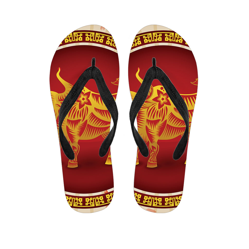 Chinese Ox Zodiac Symbol Print Flip Flops For Men Women