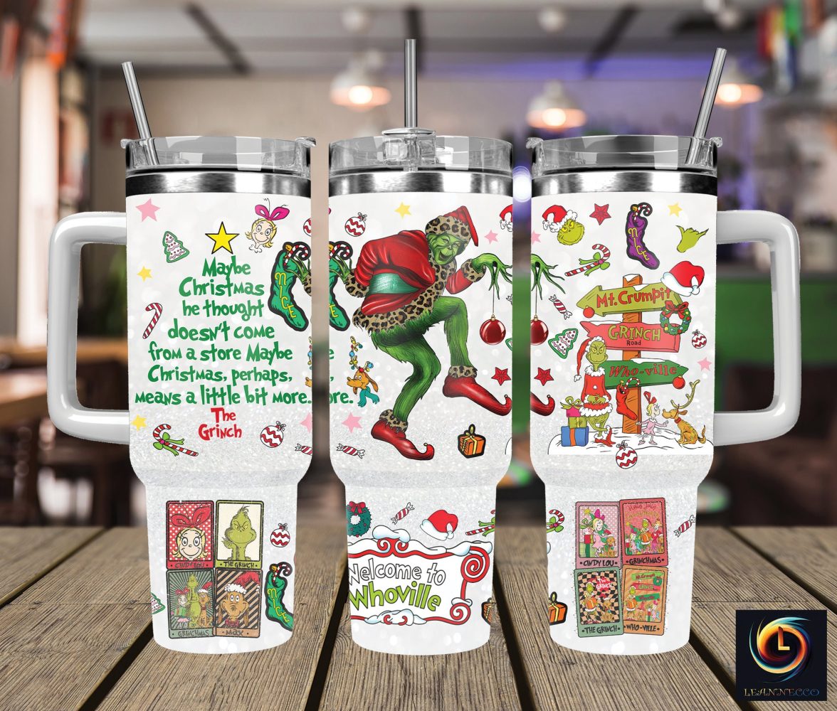 Christmas Grinch Movies Custom Stanley Quencher 40Oz Stainless Steel Tumbler With Handle