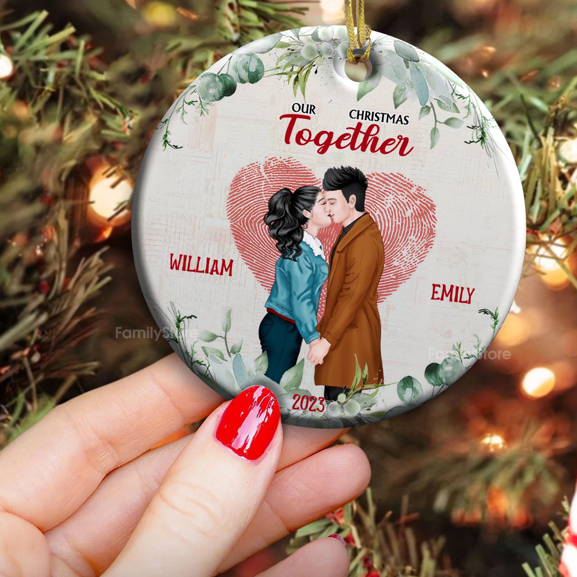 Christmas Snowy Winter Family Names Gift For Family Personalized Glass Ornament