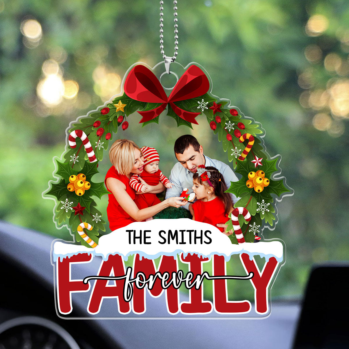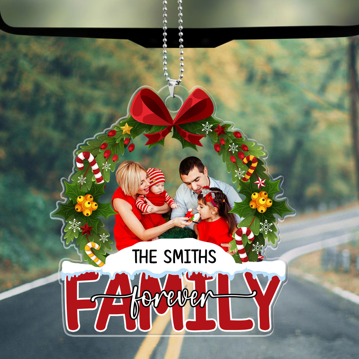 Christmas Wreath Family Forever Personalized Car Hanging Ornament