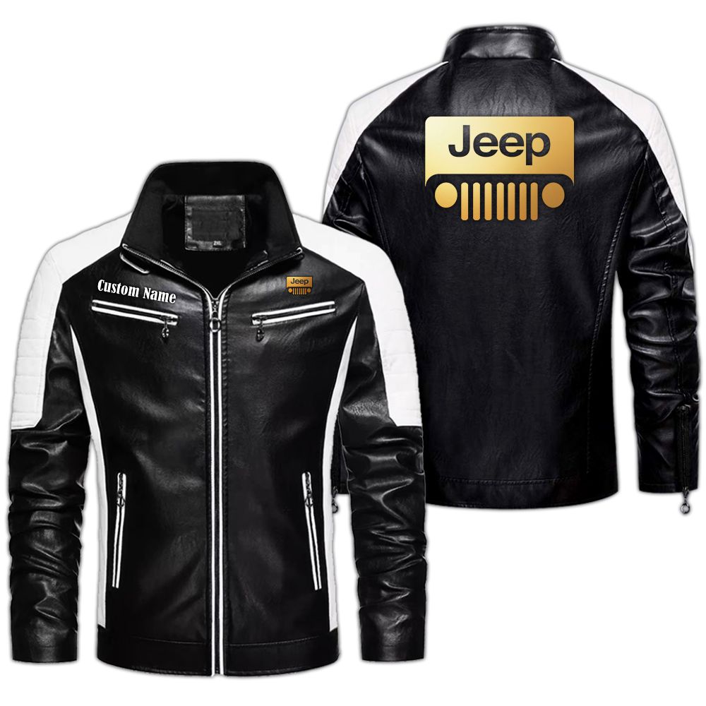 Chrysler Golden Logo Leather Biker Jacket Custom Name And Logo