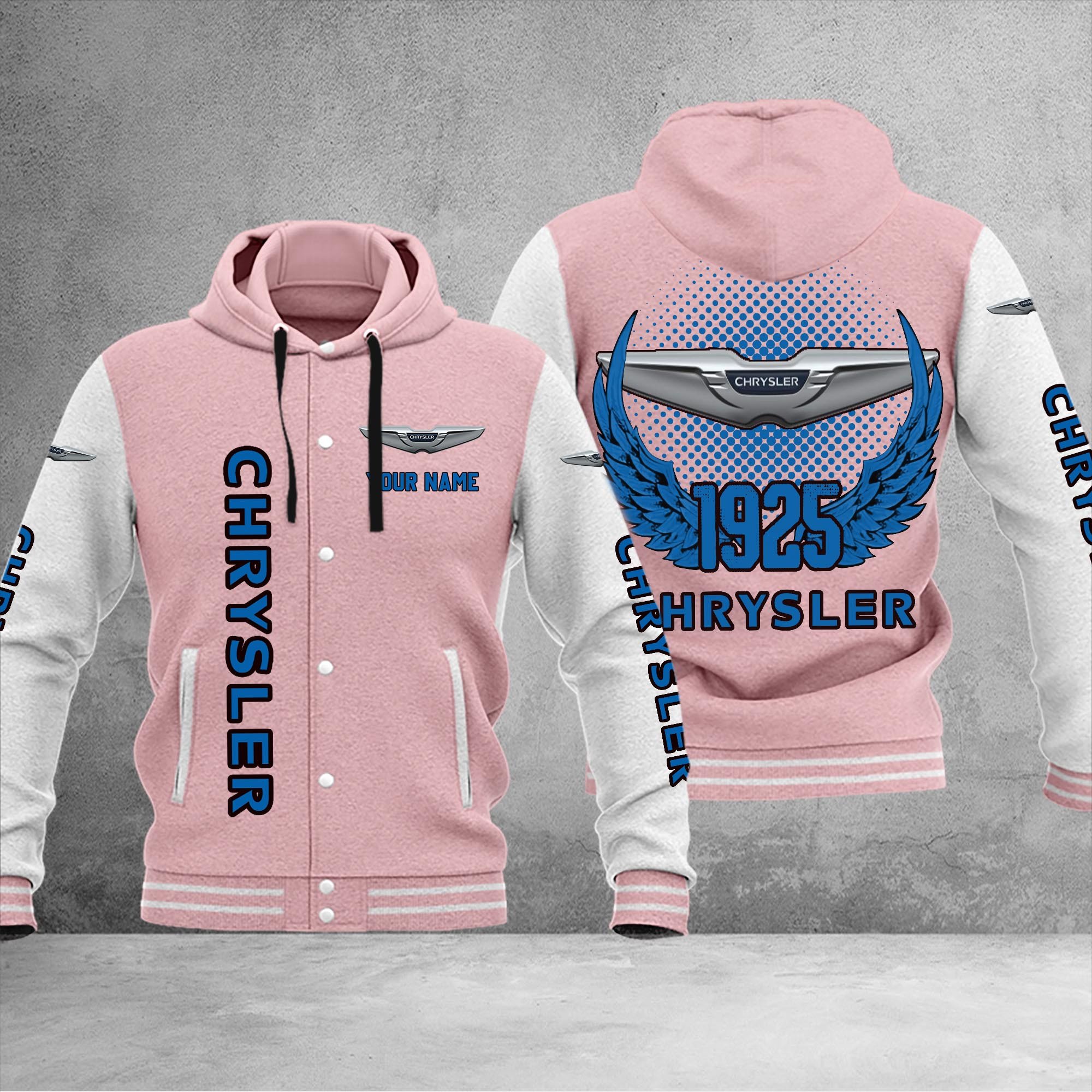 Chrysler Personalized Hooded Baseball Jacket For Fans Black
